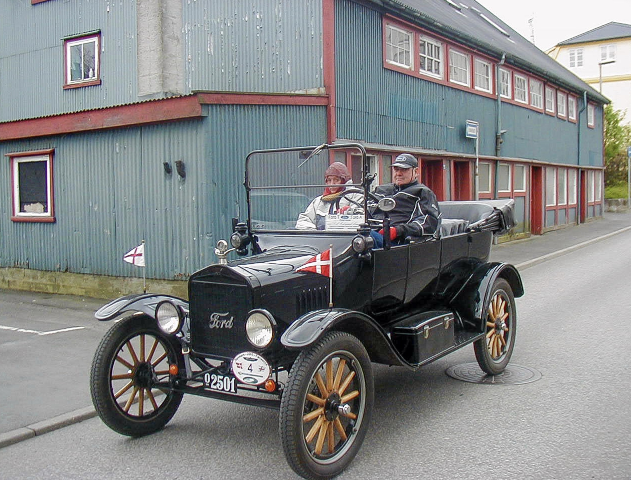 Talan var um eitt danskt ferðalag við limum í felagnum Dansk Ford T Klub, sum Hans Elmar Poulsen var limur í og hevði bjóðað til Føroyar, tá ið hann árið framman undan hevði verið og vitjað og koyrt felagstúrar saman við teimun í Danmark við sínum messing Ford T frá 1915. Teir komu við Norrønu við níggju Ford T. Saman við einum Ford T hjá Hans Elmari í Vatnsoyrum vóru teir 10 í tali. Hetta vóru nakrir sera áhugaverdir bilar.