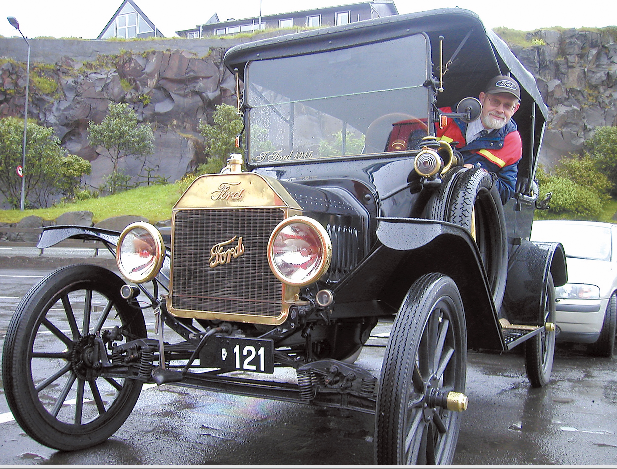 Ferðaleiðari á túrinum er einasti føroyski limurin í Dansk Ford T klub, Hans Elmar Poulsen í Vatnsoyrum, ið sjálvur hevur ein Ford T frá 1915.