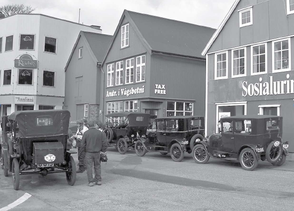 Fyri 20 árum síðani var eitt Ford T »treff« í Vágsbotni – tá 10 Ford T bilar vitjaðu Miðlahúsið.