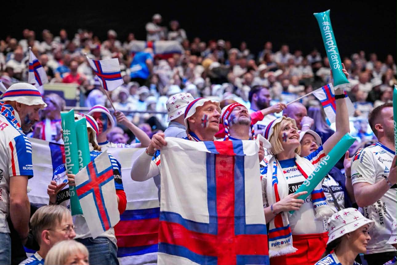 Á áskoðaraplássunum er eingin ivi, hvør er omaná. Tað eru fleiri enn seks túsund føroyskir áskoðarar, og tá ið tjóðsangirnir vórðu, var tað um reppið, at takið fór av, tá ið Tú alfagra land mítt ljómaði. Tað man vera sjáldan, um tað yvirhøvur er komið fyri, at undirtøkan fyri tjóðsangi hevur verið so stór í hondbóltslandsdysti.