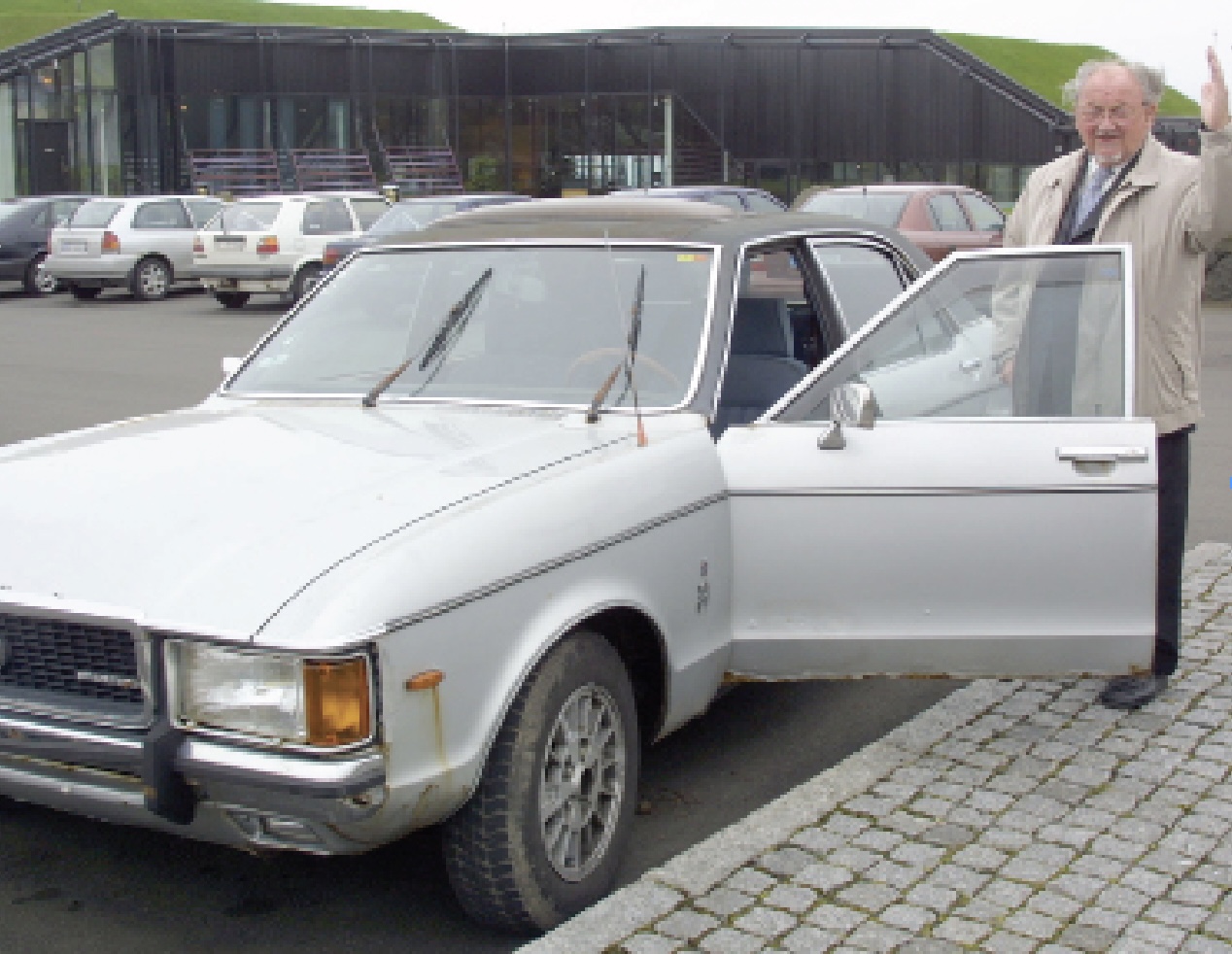 Anker Jørgensen við gamla ráðharrabilinum, sum hann hevði í 1976. Tá hesin varð skiftur út við annan bil, var hann sendur til ríkisumboðsmannin í Føroyum, sum vanliga arvaði forsætisráðharrabilin, tá hann varð skiftur út