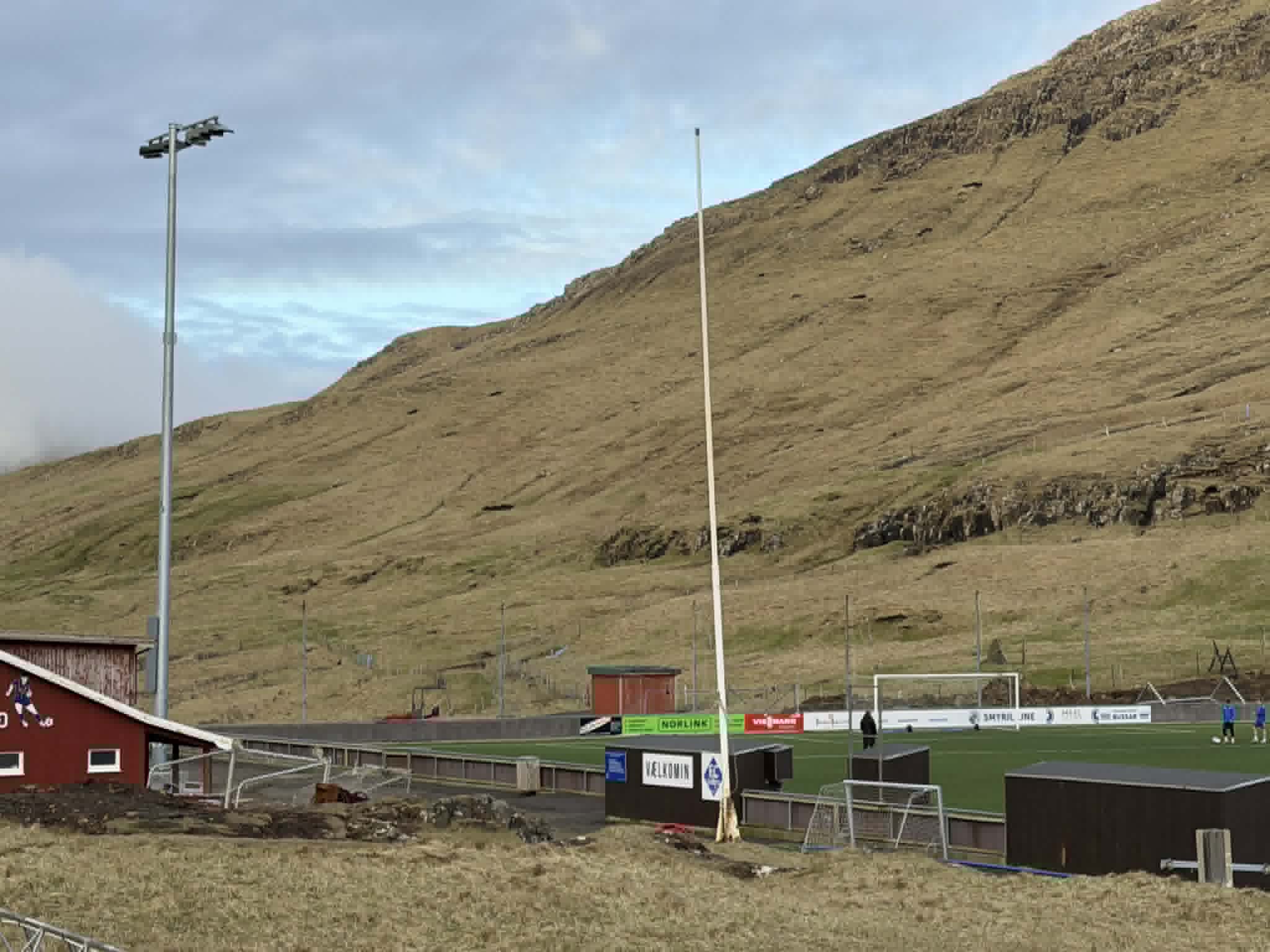 Hetta er liður í arbeiðinum at seta upp ljósmastrar kring vøllin á Eiðinum.