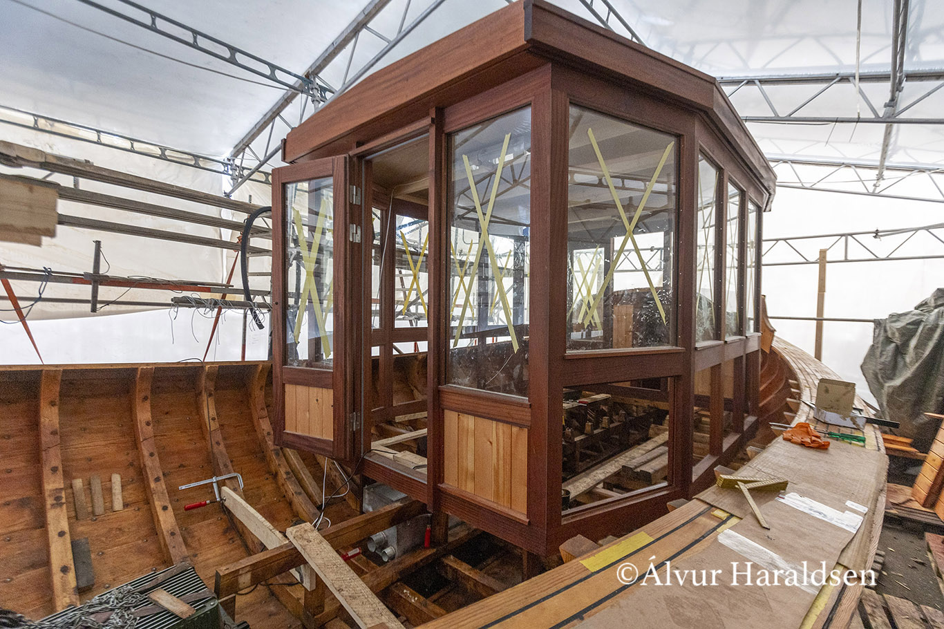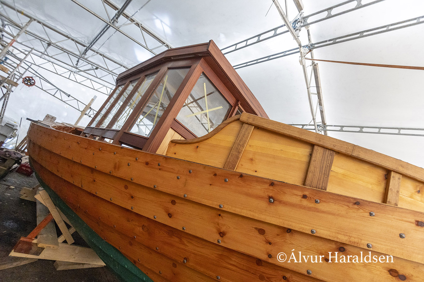 Skrokkurin á bátinum er liðugur, og nú manglar tað tekniska arbeiðið við at seta motorin í. Battaríini skulu uppá pláss, og ein ljósmotorur at brúka í neyðstøðu, skuldi tað hent at battaríini av onkrari orsøk ikki rigga ella gerast tóm.