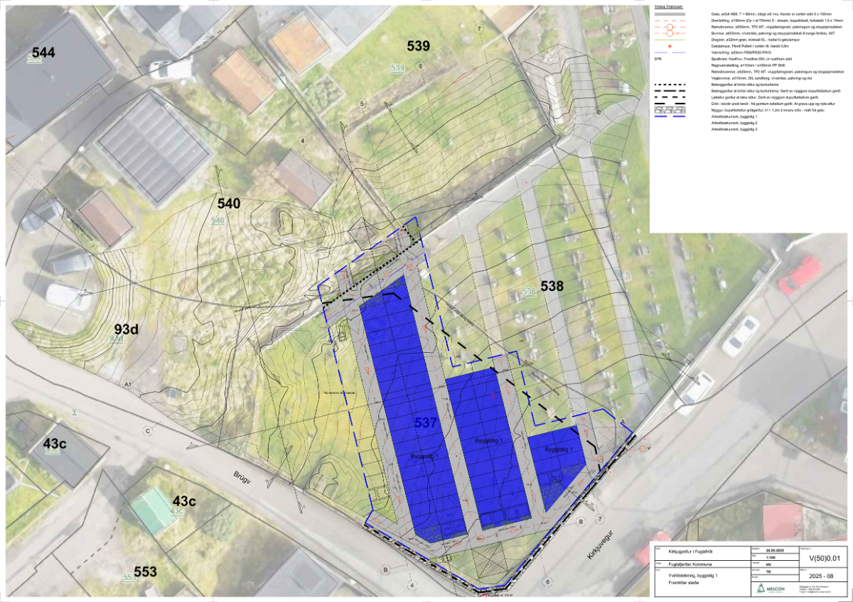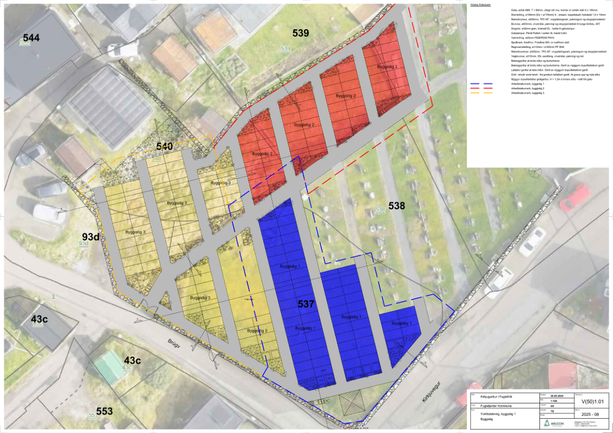 Sáttmáli er gjørdur við Sp/f Voyt um 1. Byggistig, sum sambært ætlan verður liðugt 1. august 2026. Víst á tekning V(50)0.01.