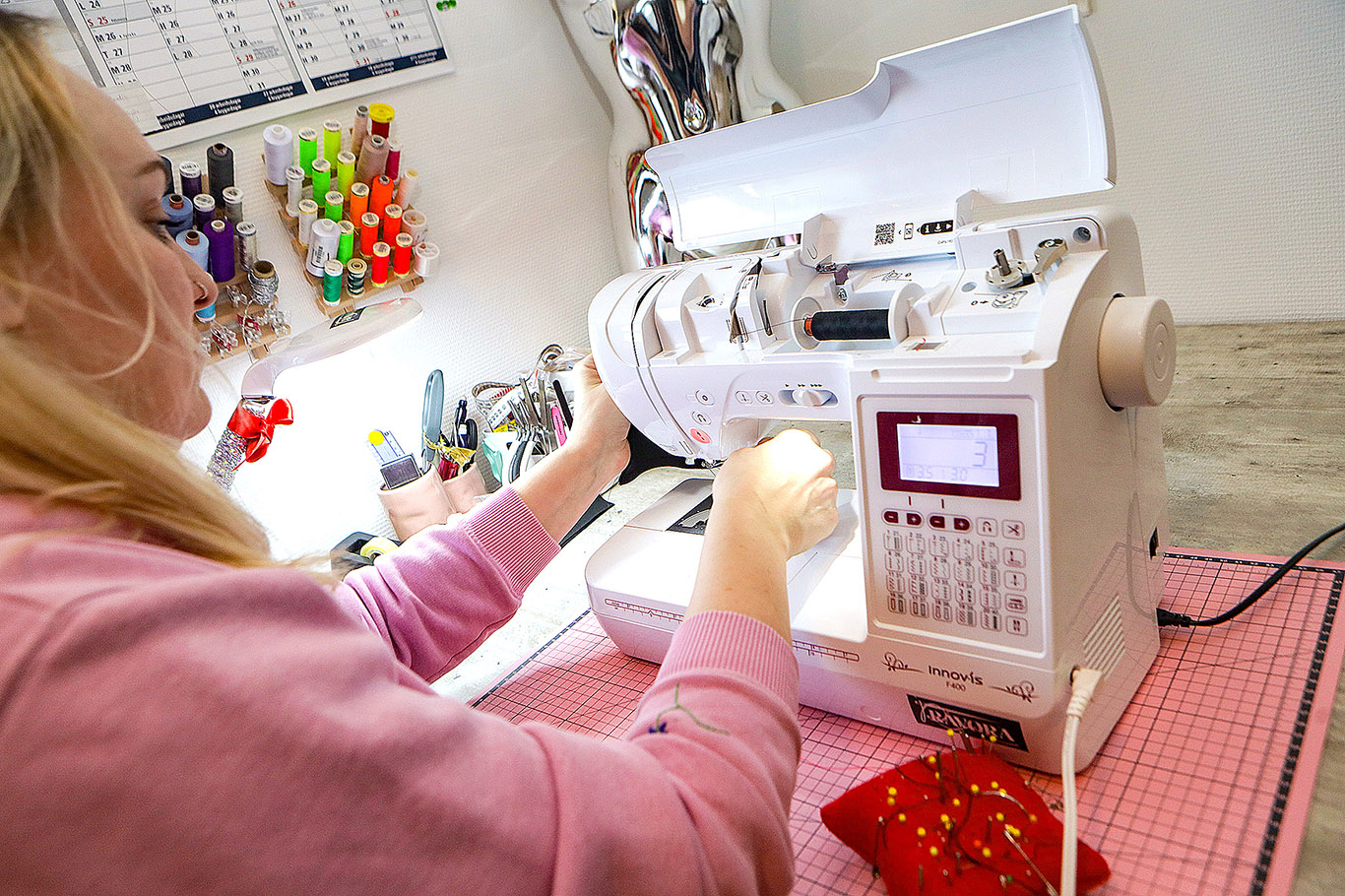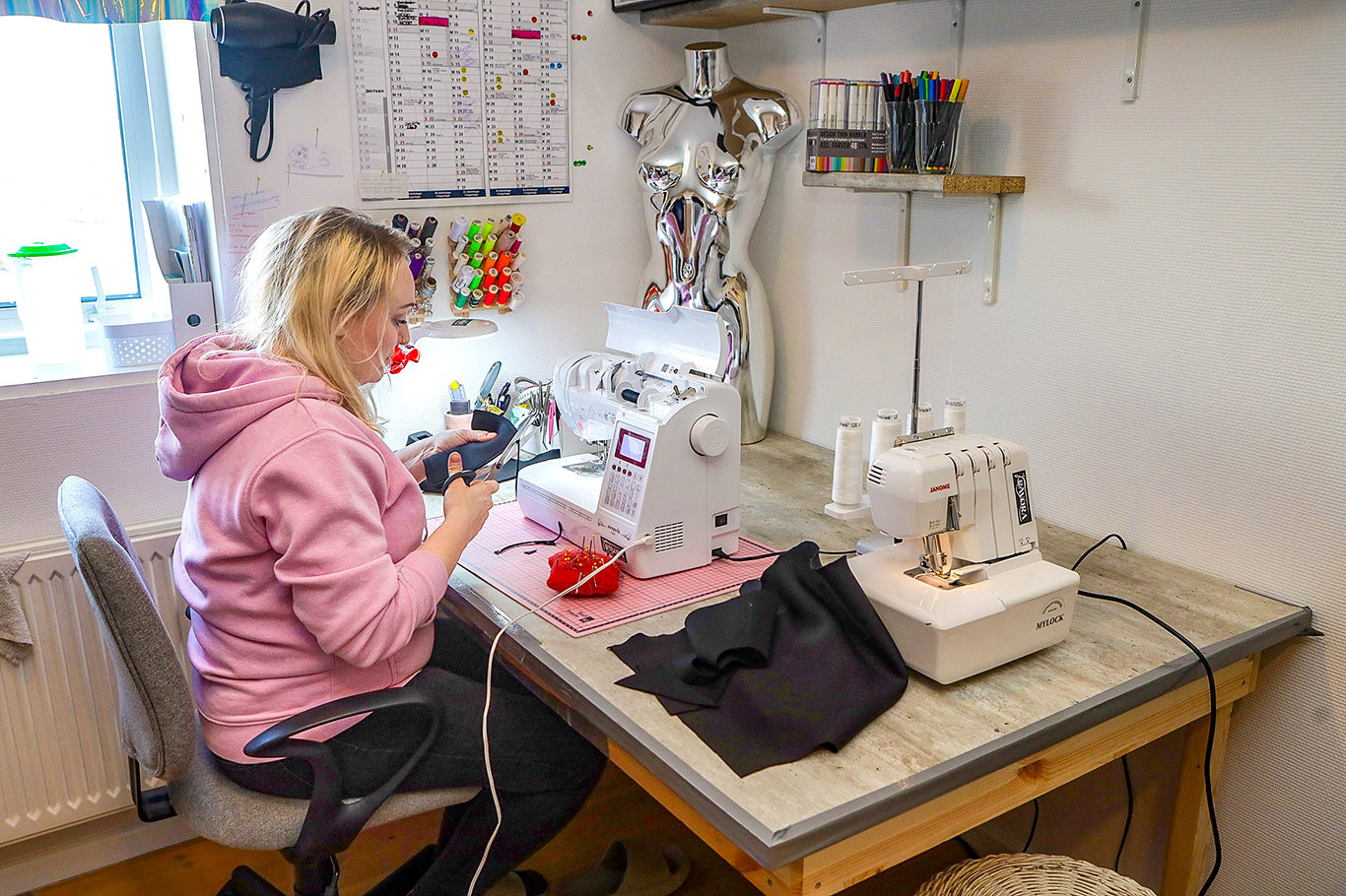 Ein vinkona hjálpti henni við øllum sum skal til, tá fyritøka verður sett á stovn. Seymistovan bleiv væl móttikin frá fyrsta degi, og áhugin bara veksur.