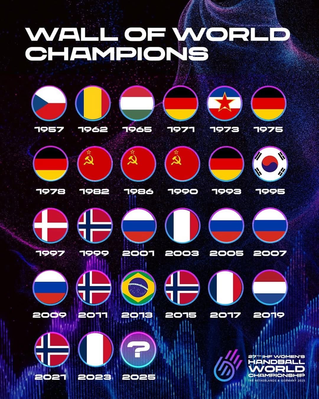 Skipað hevur verið fyri HM hjá kvinnum síðani 1957. Millum heimsmeistararnar eru lond, ið ikki eru til longur, so sum Kekkoslovakia, Sovjetsamveldið og Jugoslavia. Tvey norðurlond, Noreg og Danmark hava vunnið HM.