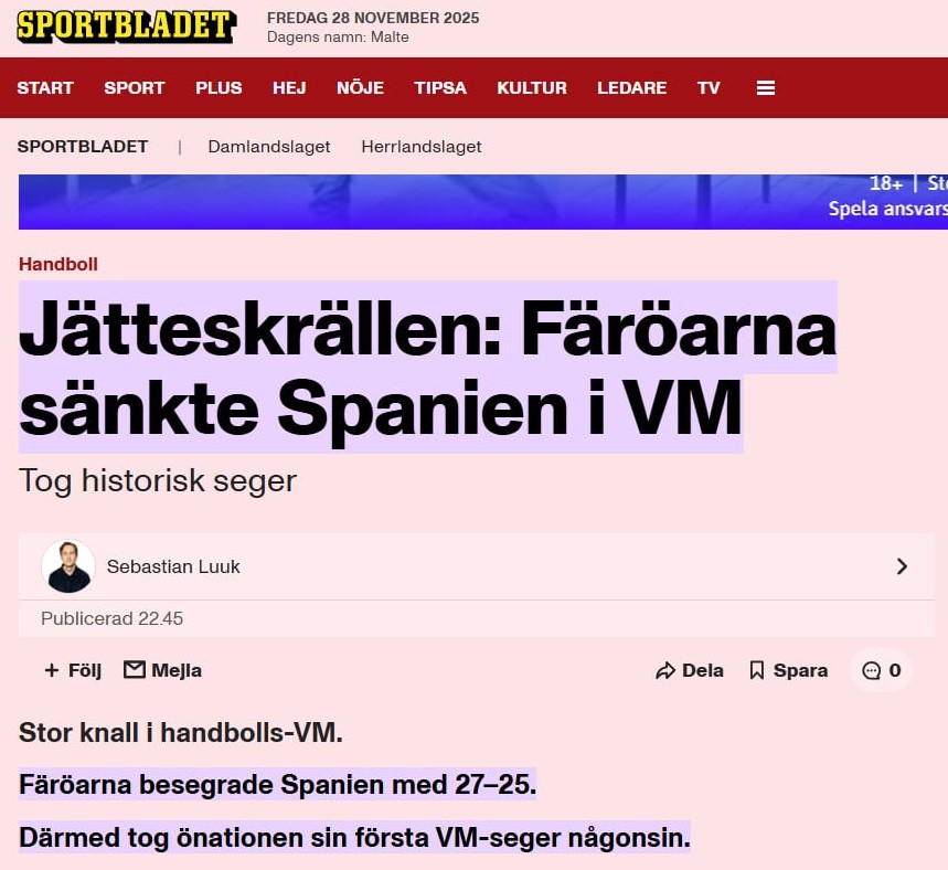 Her eru yvirskriftirnar hjá donsku BT, DR og Ekstrabladet, norska Dagbladet, íslendsku Morgunblaðið og Vísir, IHF, og svenska Dagbladet: