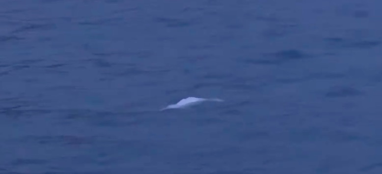 - Ein serlig uppliving - ein hvítur hvalur svimur út fyri Leynasandi í kvøld.