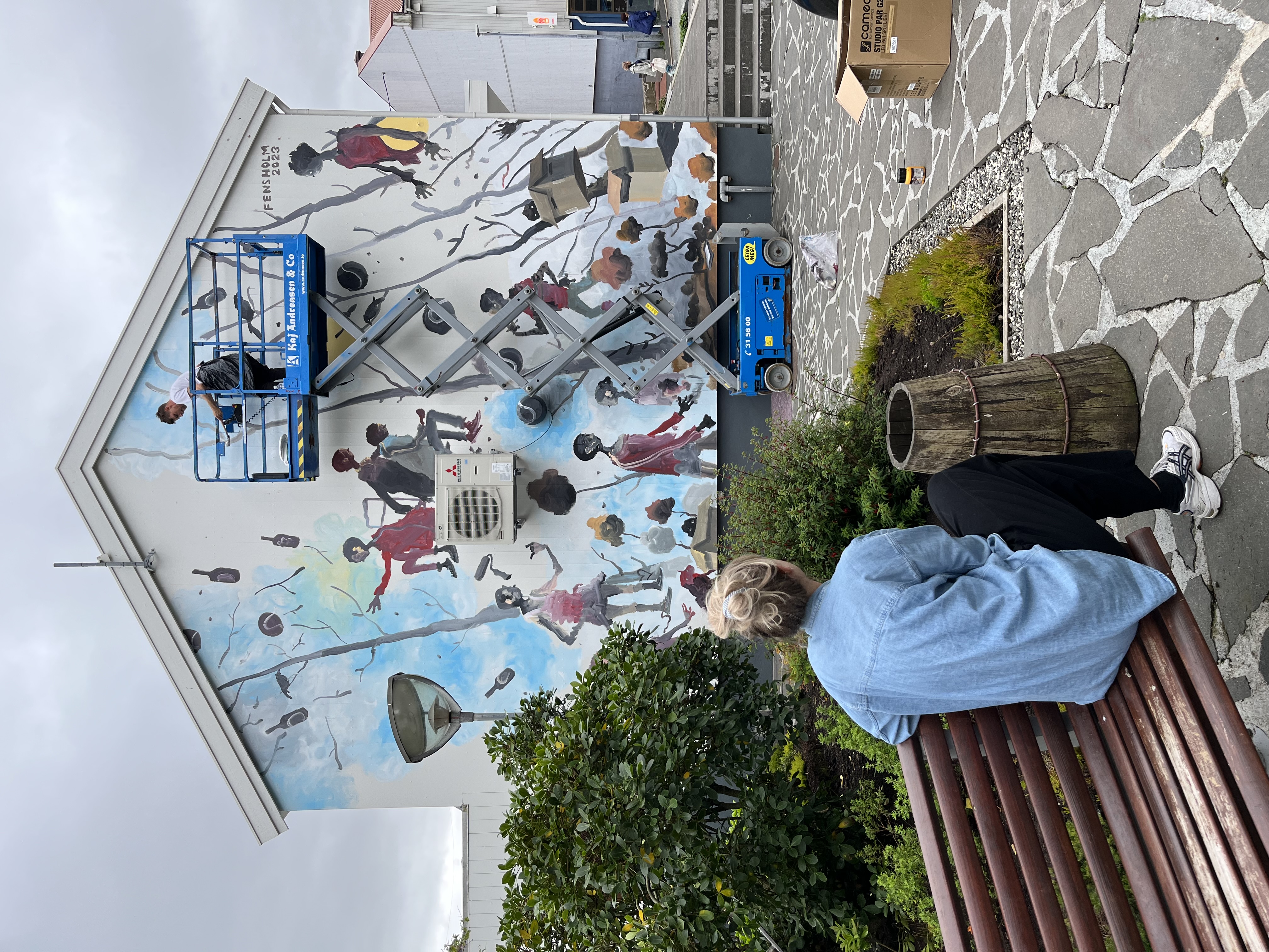 Tey skapa veggjamálaríir í almenna rúminum.