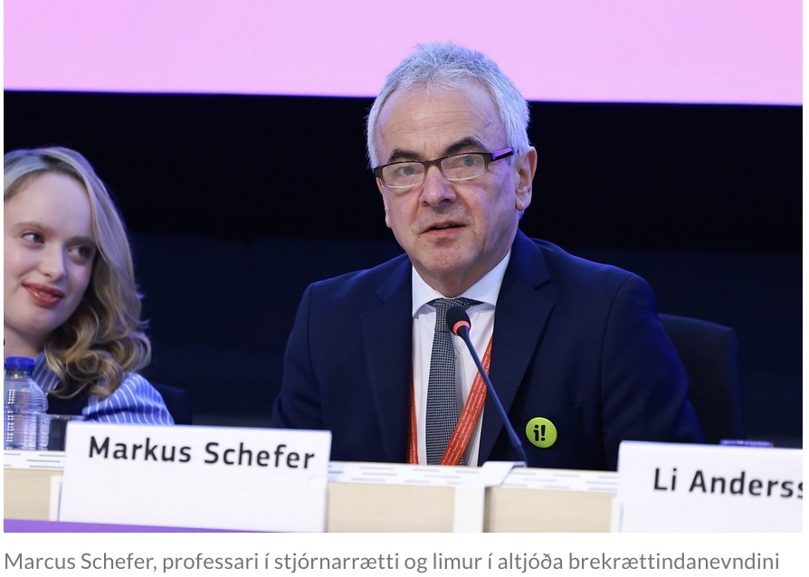 Marcus Schefer, professari í stjórnarrætti og limur í altjóða brekrættindanevndini, greiddi frá tilgongdini at ummæla brekrættindi í evropeiskari lóggávu. Schefer professari, sum eisini stóð á odda fyri at skriva nýggjastu tilmælini frá ST-brekrættindanevndini til Føroyar, legði út við einum herðaklappi til umboð fyri ES, tí at tey ikki áhaldandi høvdu brúkt undanførslur og royndu at snúgva sær undan at svara spurningum undir hoyringini í Geneve. Hetta var eftir honum at døma frálíkt, men tíverri sera sjáldsamt.