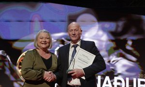Elsa Samuelsen tók móti heiðrinum, ið róðrar-legendan, Jannie Dam Jacobsen handaði.