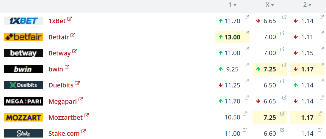 Oddsini upp á javnleik aftaná vanliga leiktíð liggja millum 6,50 og 7,25.
