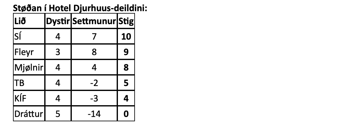 Støðan í Hotel Djurhuus-deildini: