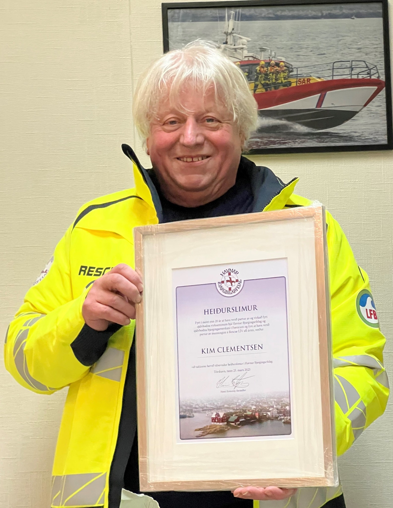 Rescue lív skrivar, at Kim Clementsen útnevndur heiðurslimur í Havnar Bjargingarfelag fyri sítt trúgva og drúgva arbeiði fyri Havnar Bjargingarfelag og fyri sjálvbodnu tilbúgvingina í Føroyum.