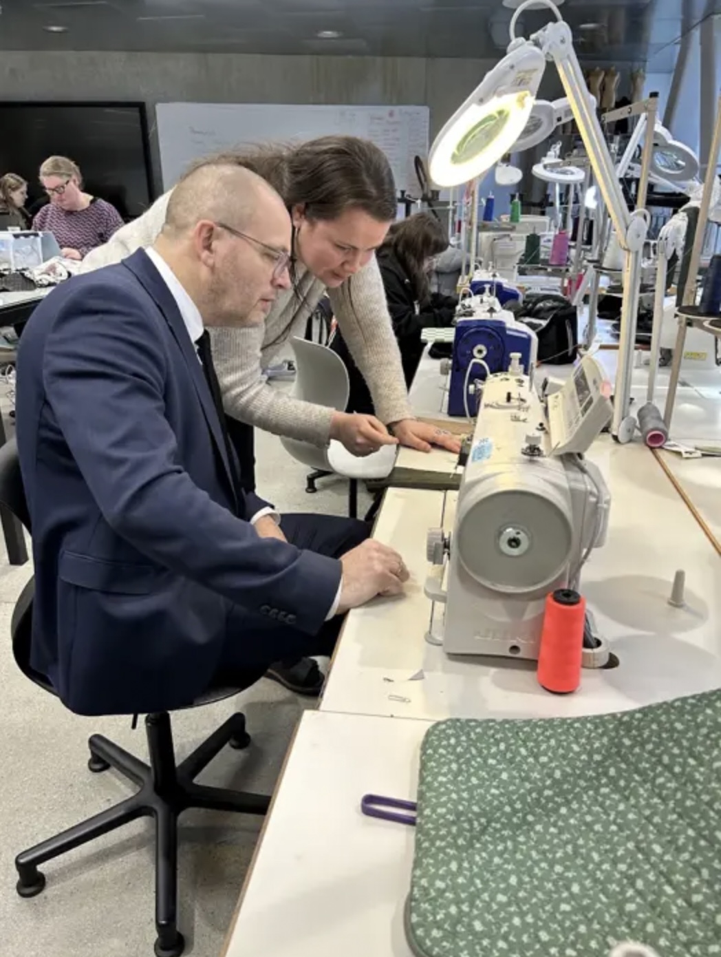 Landsstýrismaðurin nýtti eisini høvi at heilsa upp á næmingar og starvsfólk á klædnaatstøðiútbúgvingini, sum var so nógv umrøtt herfyri. Landsstýrismaðurin er glaður fyri, at ferð nú fer at verða sett á arbeiðið at endurskoða útbúgvingarnar innan klædnaatstøði og tilvirkisatstøði, soleiðis at hesar kunnu blíva heilar yrkisútbúgvingar. Tað er hugtakandi at síggja allan kreativitetin, sum er á einum slíkum staði.
