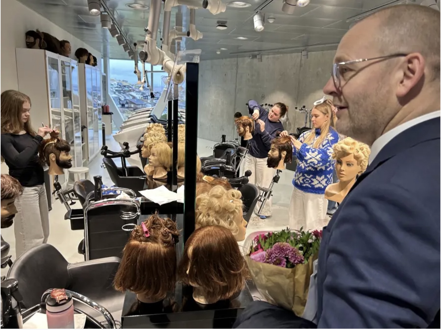 Landsstýrismaðurin vitjaði somuleiðis hárbreytina, har allar genturnar vóru í gongd við at læra handverkið at klippa.