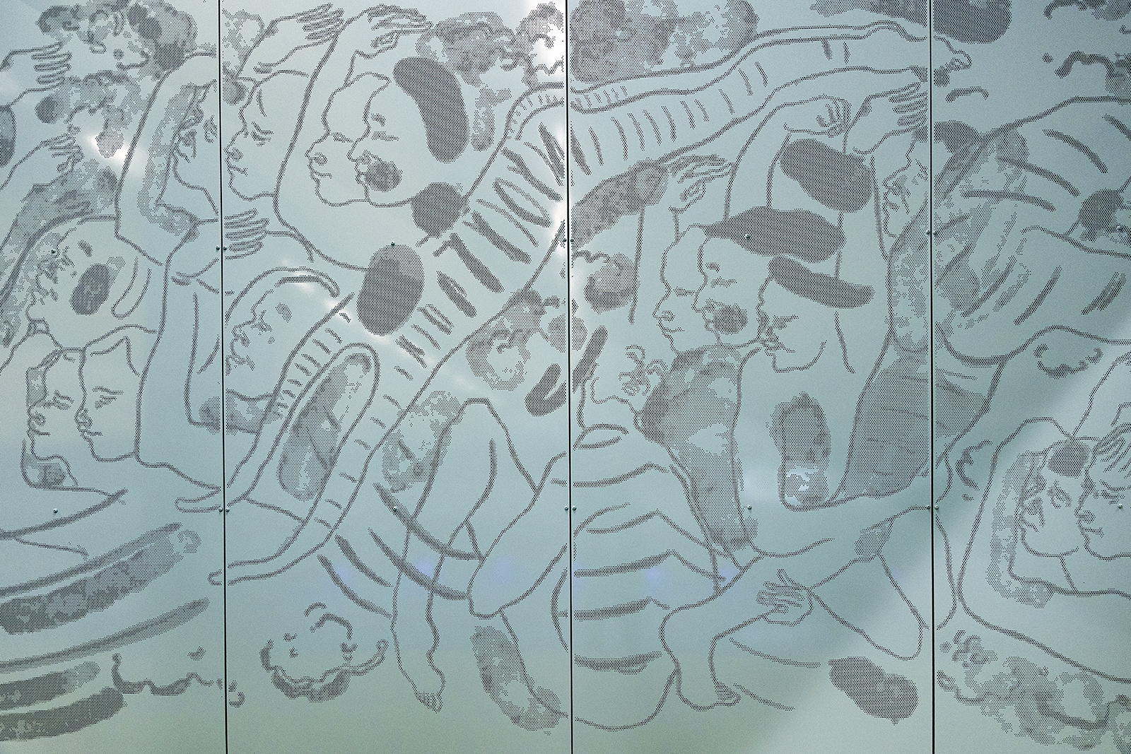 Listaverkið hjá Silju Strøm er gjørt úr aluminiumsplátum, framleiddar í Týsklandi, og motivini á plátunum eru gjørd við smærri og størri holum. Listaverkið er í tveimum – eitt langt samanhangandi verk øðrumegin langhylin, og hinumegin, har áskoðaraplássini eru, eitt verk, sum verður býtt upp í partar av stólpunum, sum eru partur av bygninginum. Og talan er um eitt stórt verk – langhylurin er 50 metrar langur, og listaverkið røkkur úr einum enda í hin.