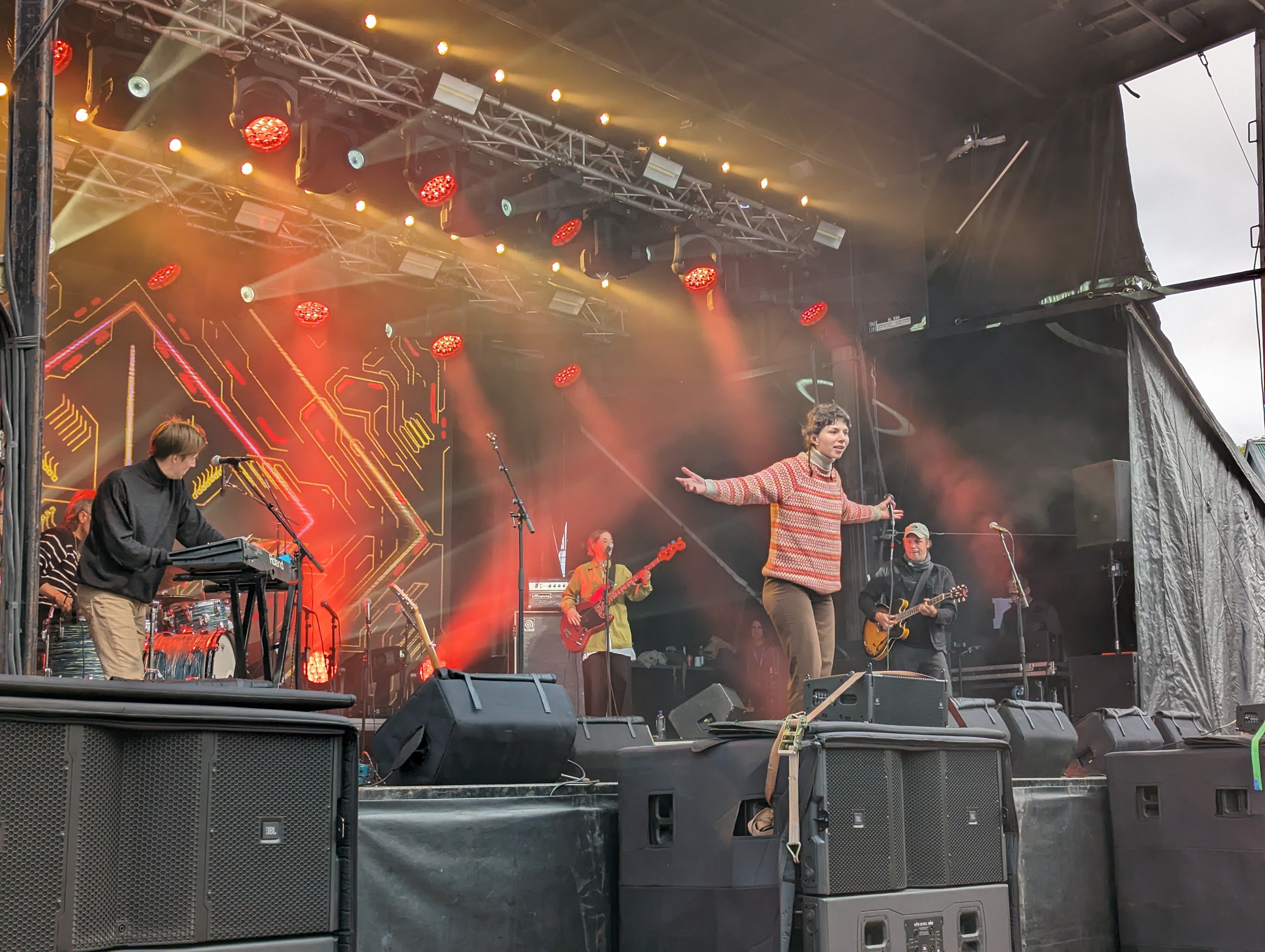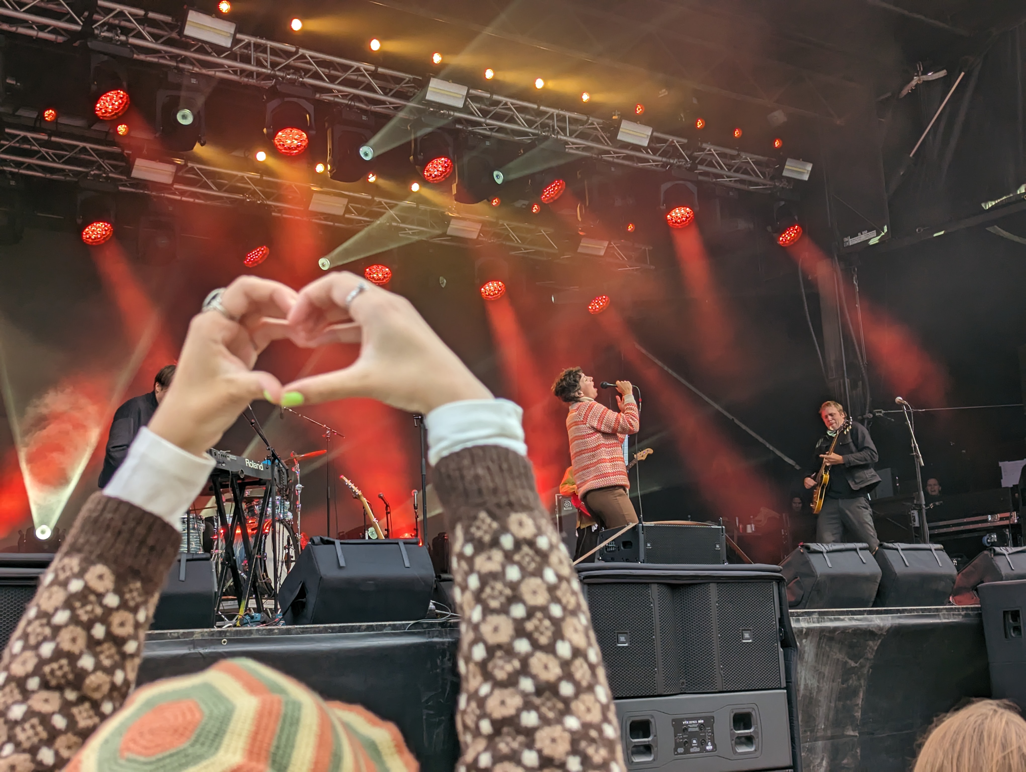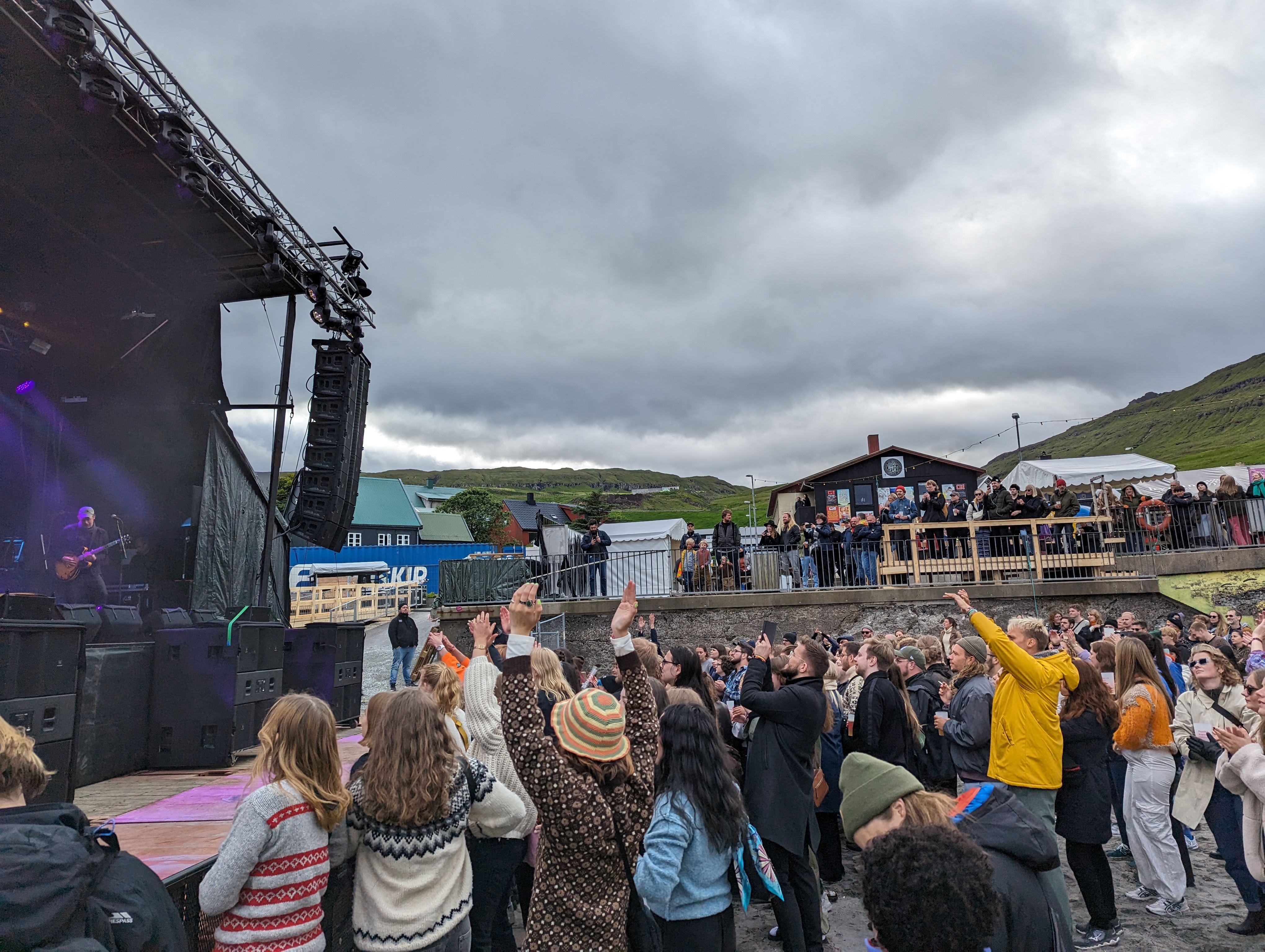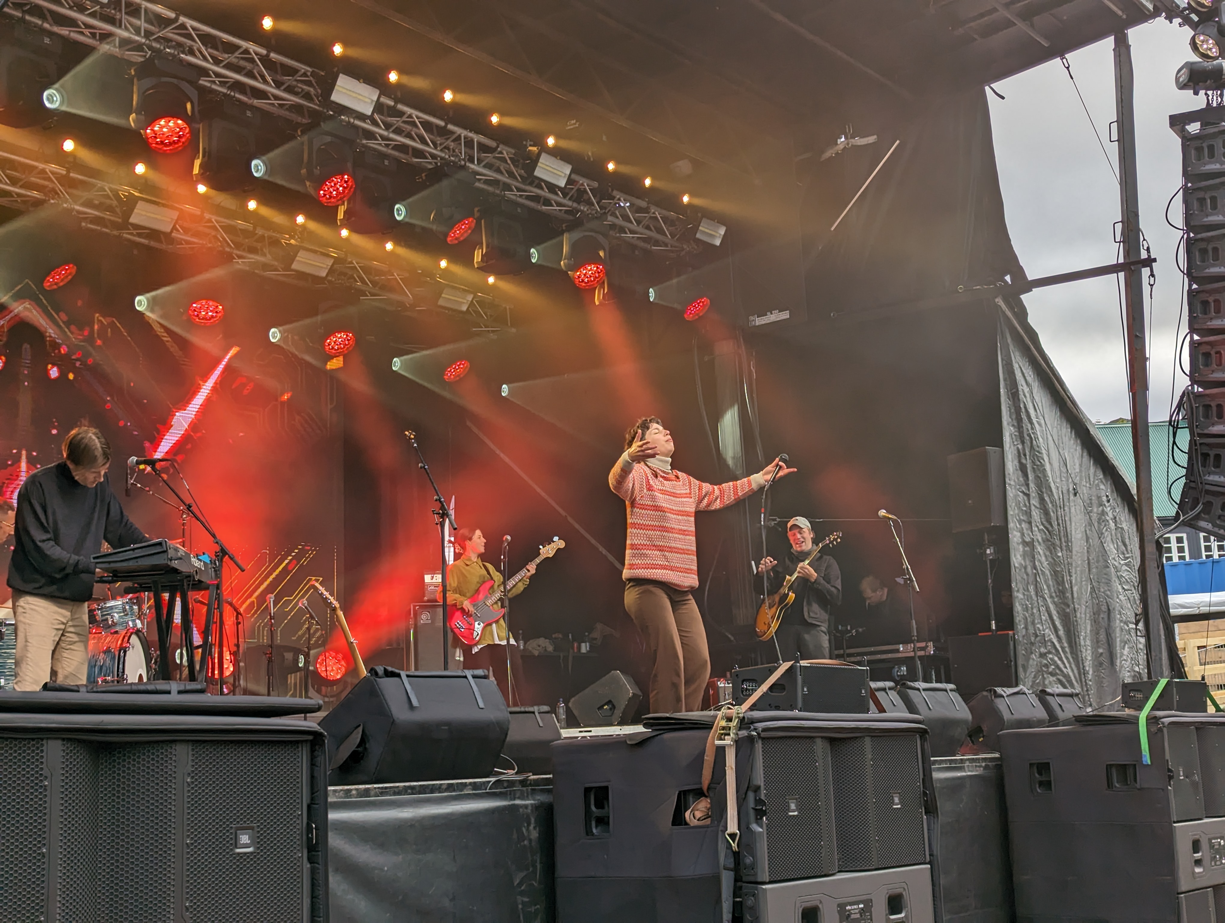 – Her koma Elinborg, Lea, Søren og Katrin, segði Lucky Lo, meðan tey trý runnu inn á pallin, øll ordiliga við upp á tað, meðan tónleikararnir byrjaðu at spæla introina til næsta sangin.