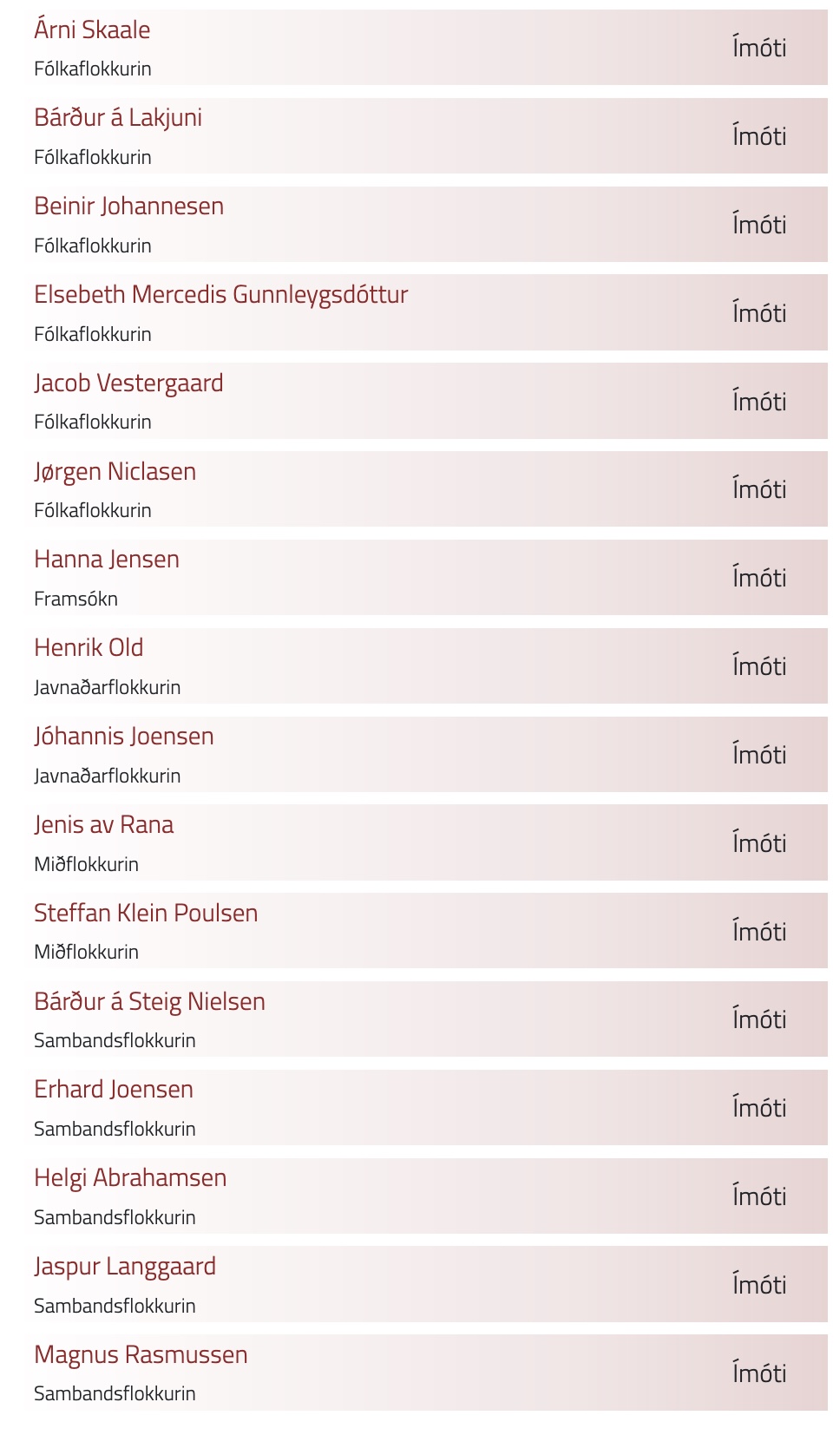 Hesi 16 tingfólkini atkvøddu ímóti uppskotinum: