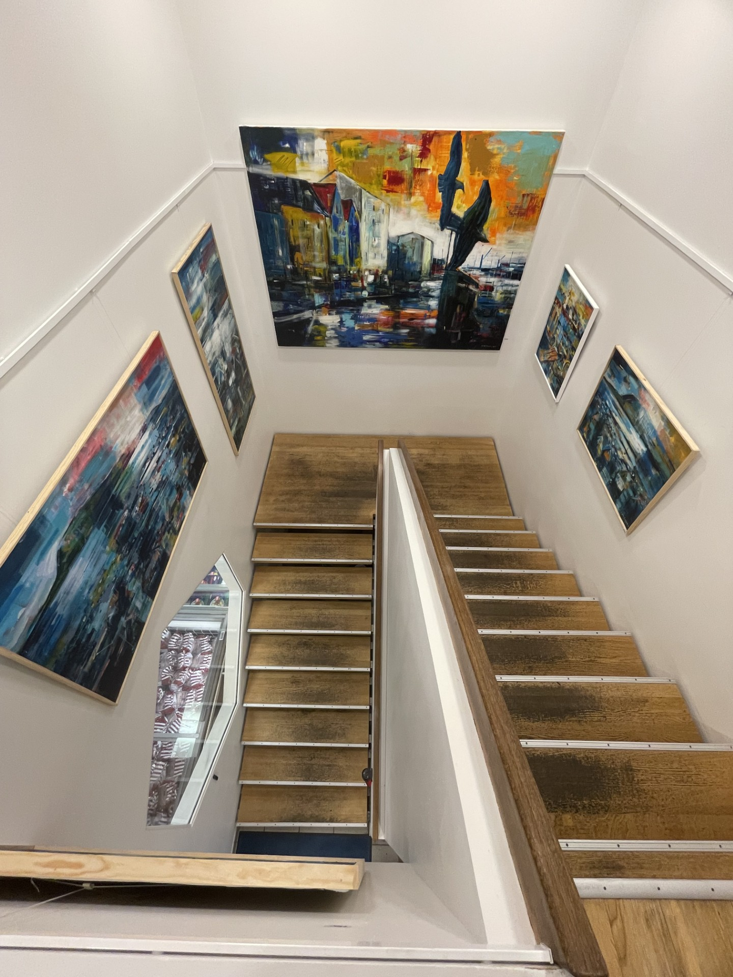 Við í framsýningini eru uml. 15 málningar, sum kunnu síggjast við uppgongdina til Matstovuna og inni í Matstovuni.
