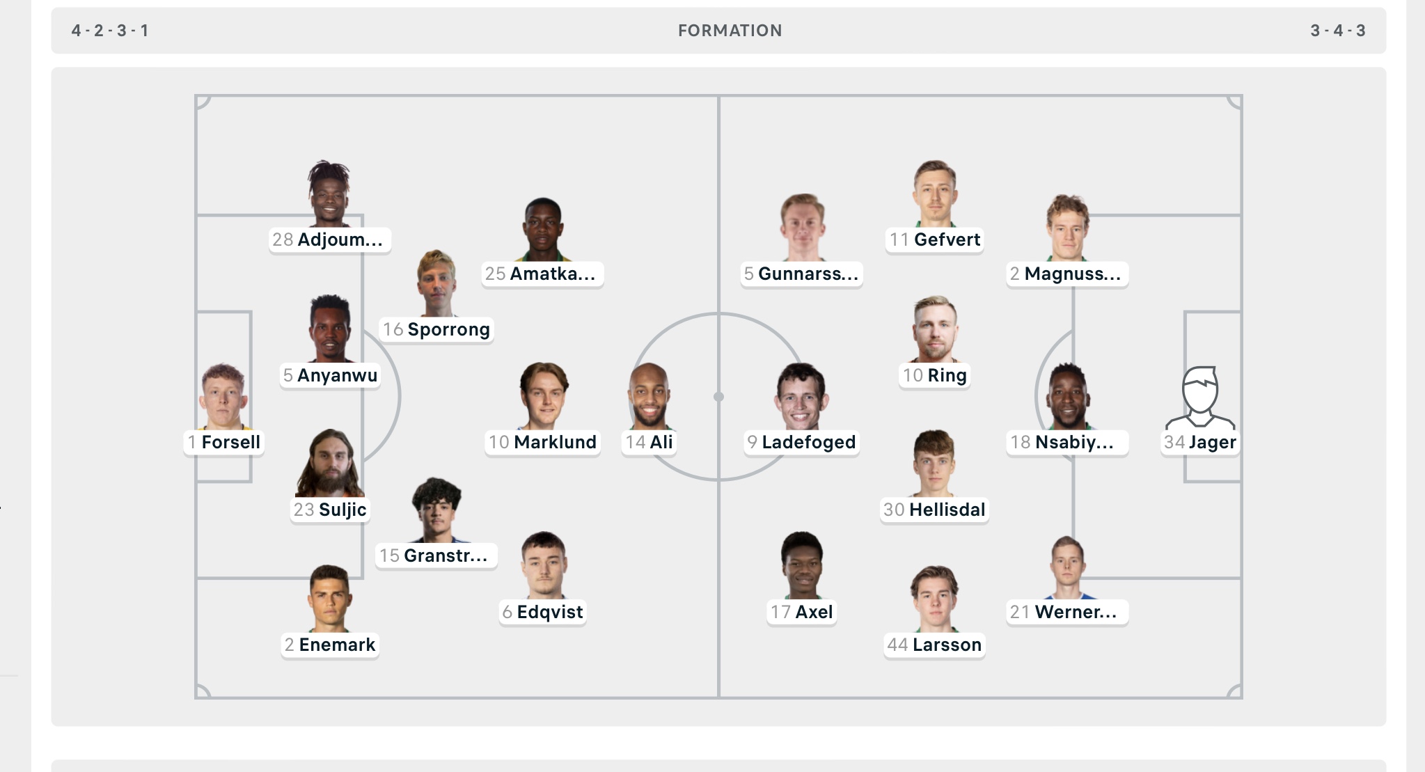 Lið hansara, Västerås SK spælir á útivølli dyst móti Östersund. Mattias er á miðvøllinum hjá Västerås. Dysturin byrjaði klokkan 12, ið er klokkan 13 lokala tíð.