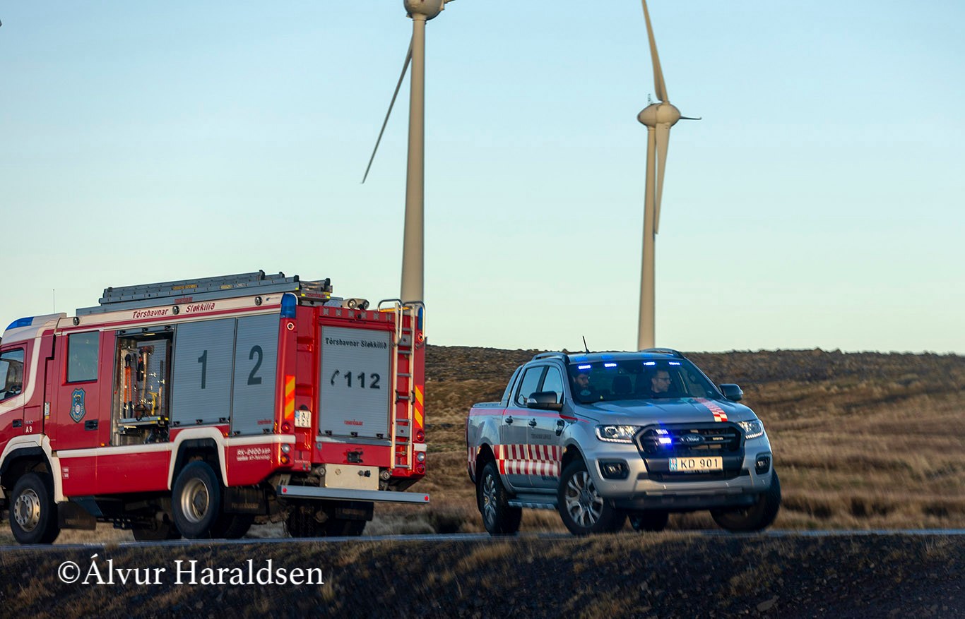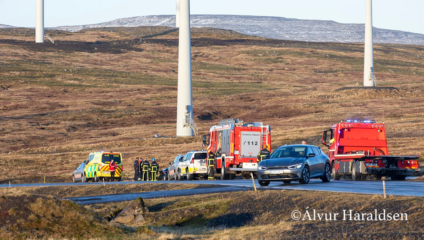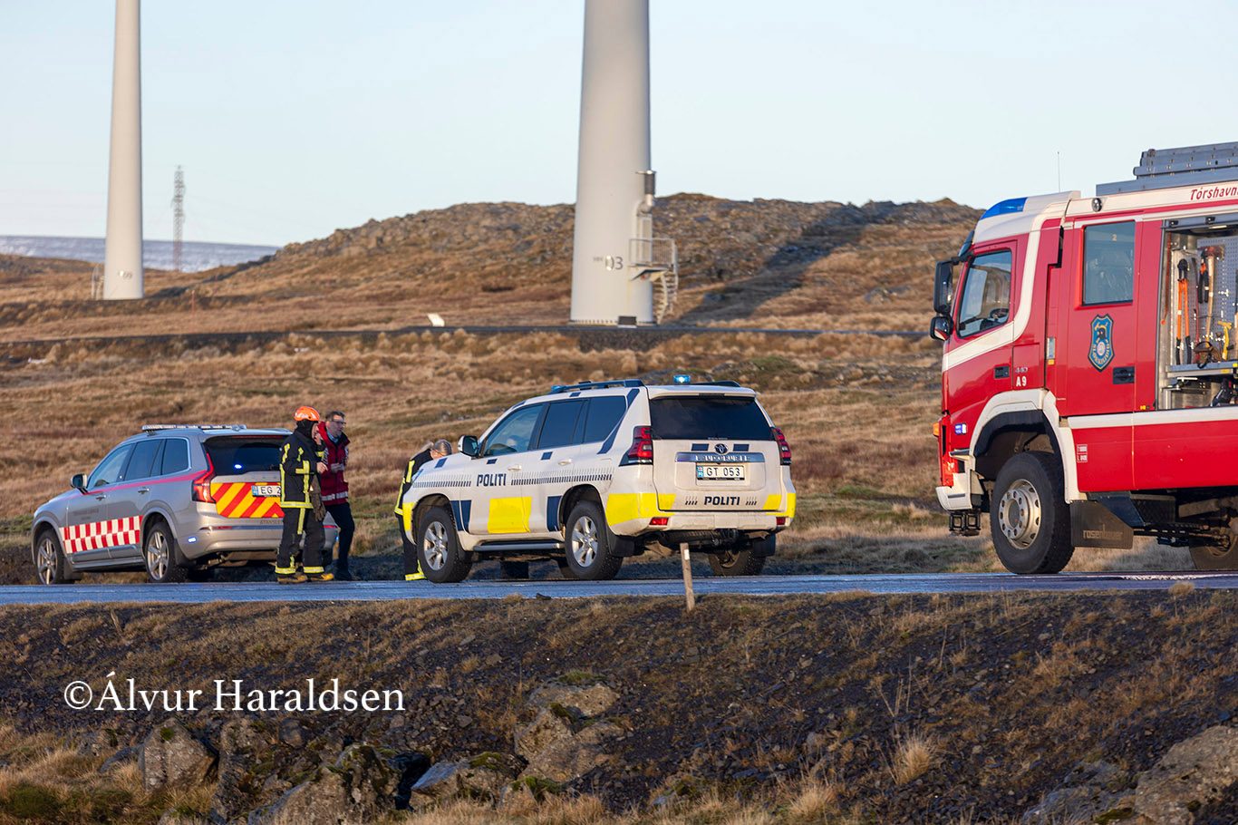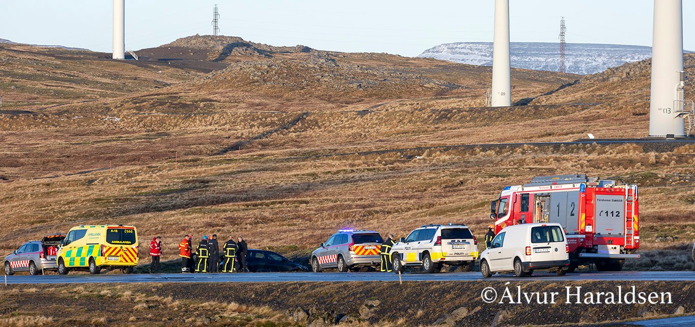 Tað var stutt fyri klokkan 13 í gjár, at løgreglan fekk boð um, at ein bilur var farin út av vegnum uppi á Oyggjarvegnum norðan fyri Kleynisvarða oman fyri Havnina.