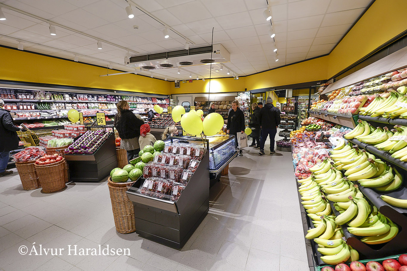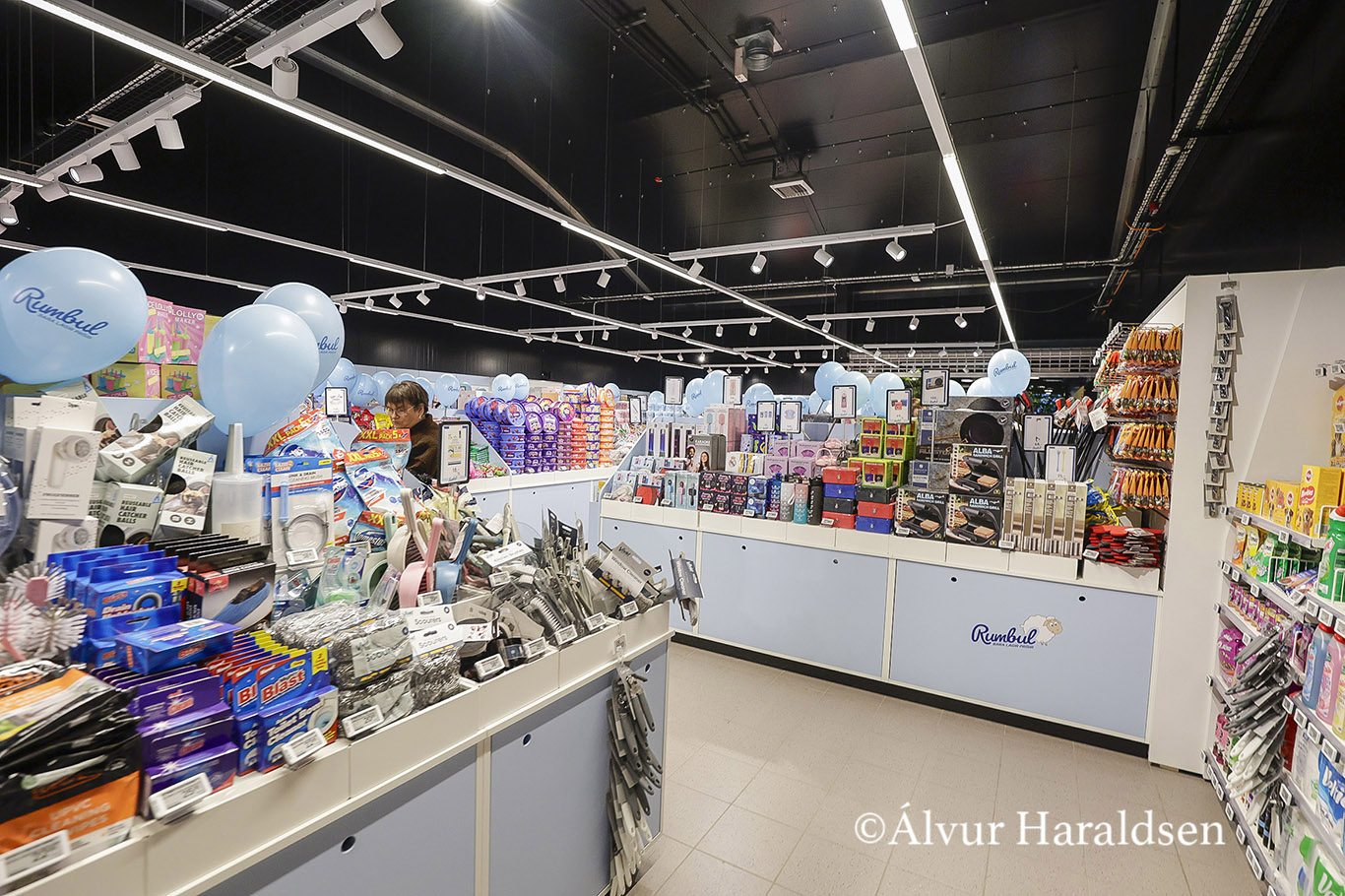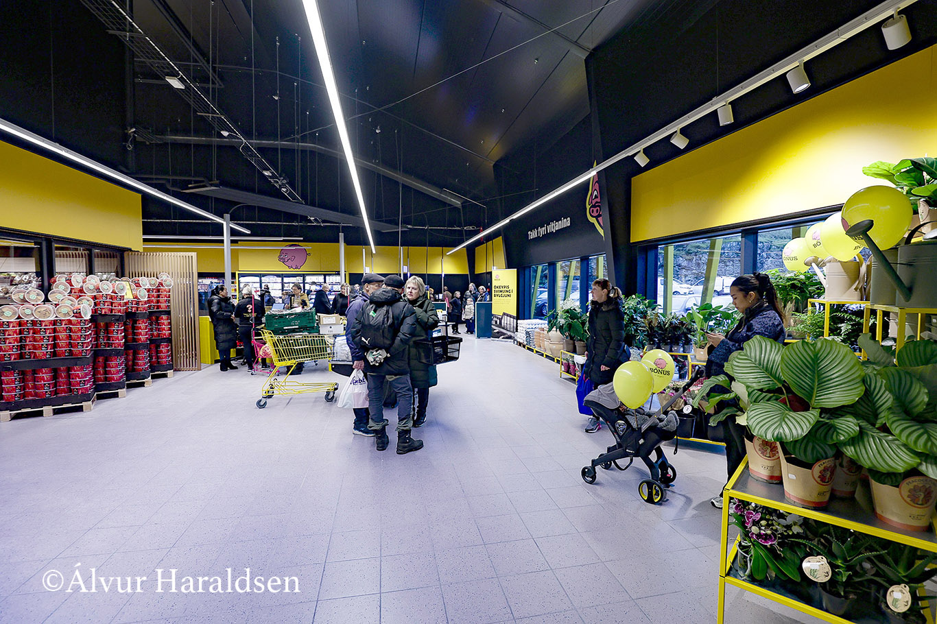 Handilsbygningurin Bryggjan í Runavík latin upp í dag. í bygninginum eru Bónus, Rumbul, Skálkur og Sunset.