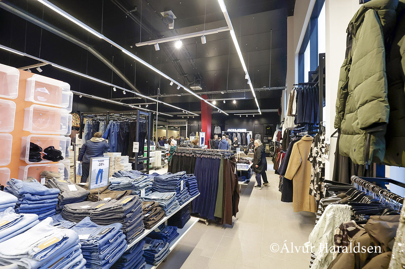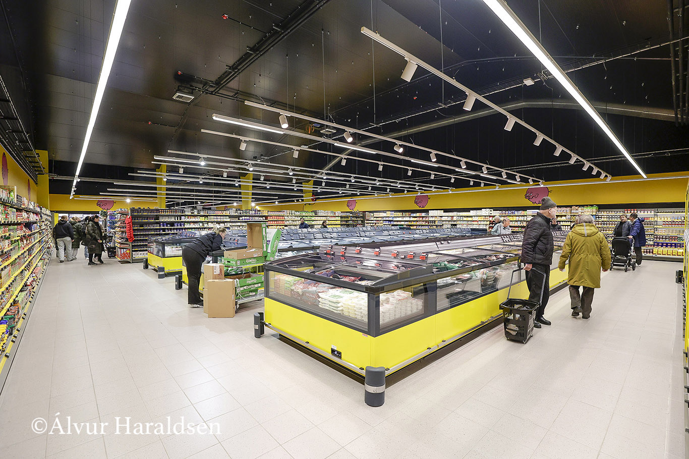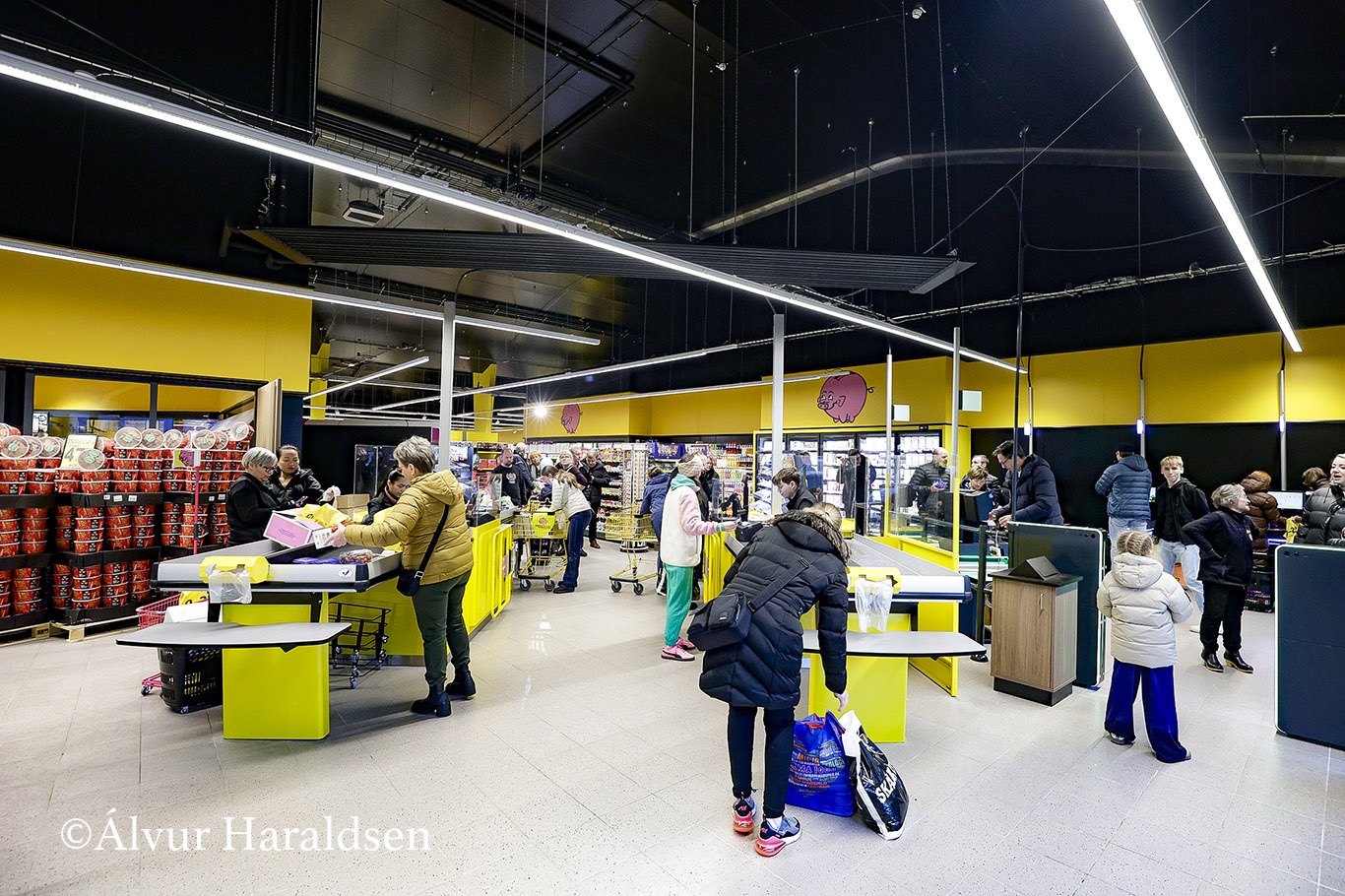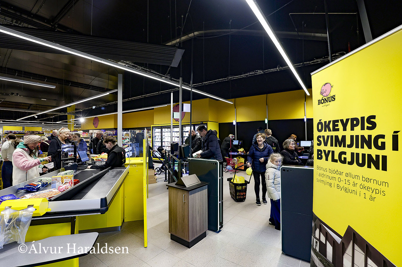 Handilsbygningurin Bryggjan í Runavík latin upp í dag. í bygninginum eru Bónus, Rumbul, Skálkur og Sunset.