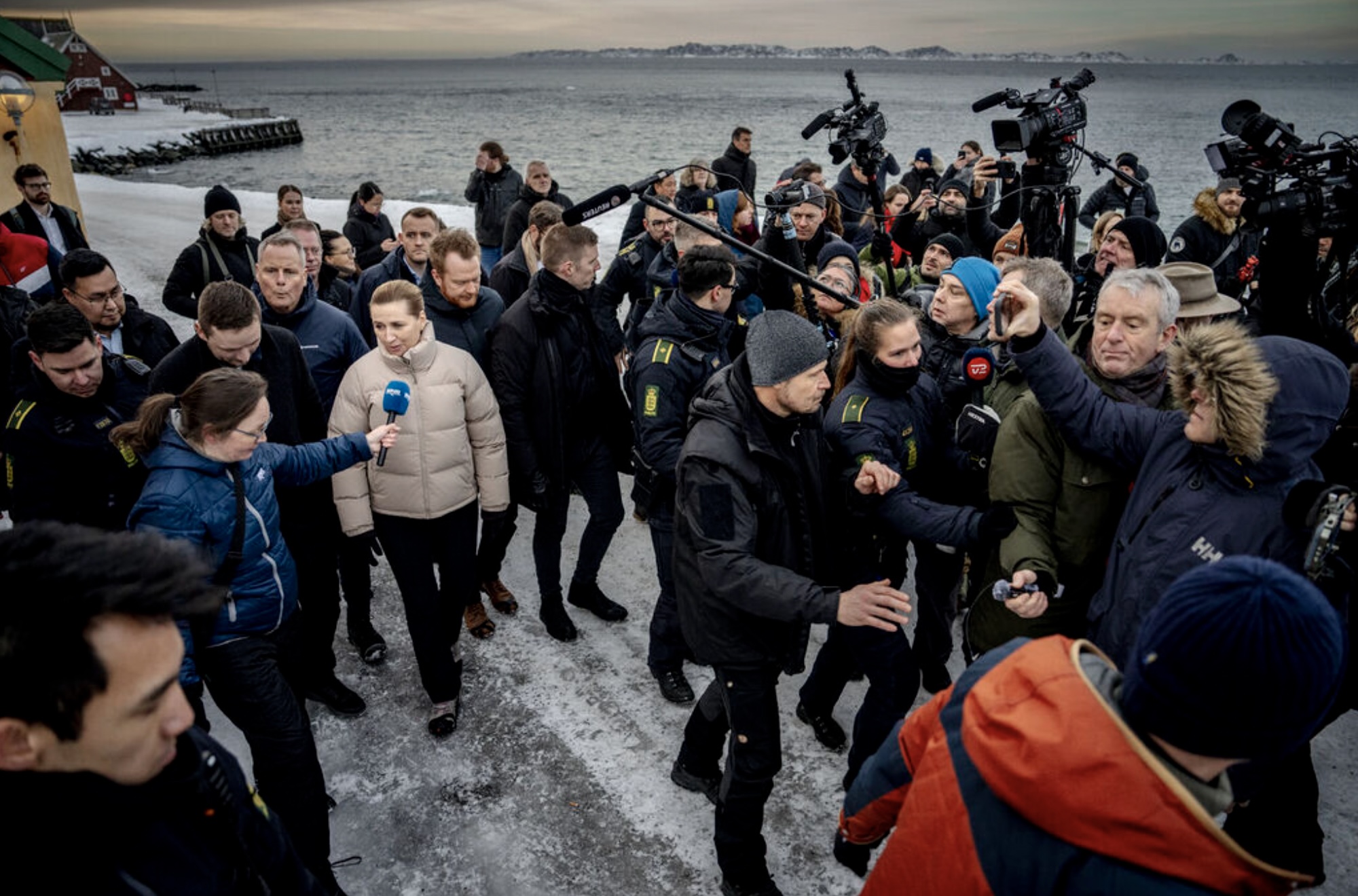 Men alt rokið um Grønland hevur veruliga skapt áhuga fyri Grønlandi í heimspressuni. Nógv størri áhuga, enn vit kenna til í Føroyum. Yvir 70 útlendsk tíðindafólk hava verið í Grønlandi seinastu dagar, og niðanfyri endurgeva vit nakrar av myndinum, sum danska tíðindastovuni Ritzau hevur latið okkum.