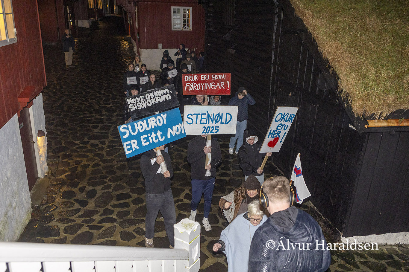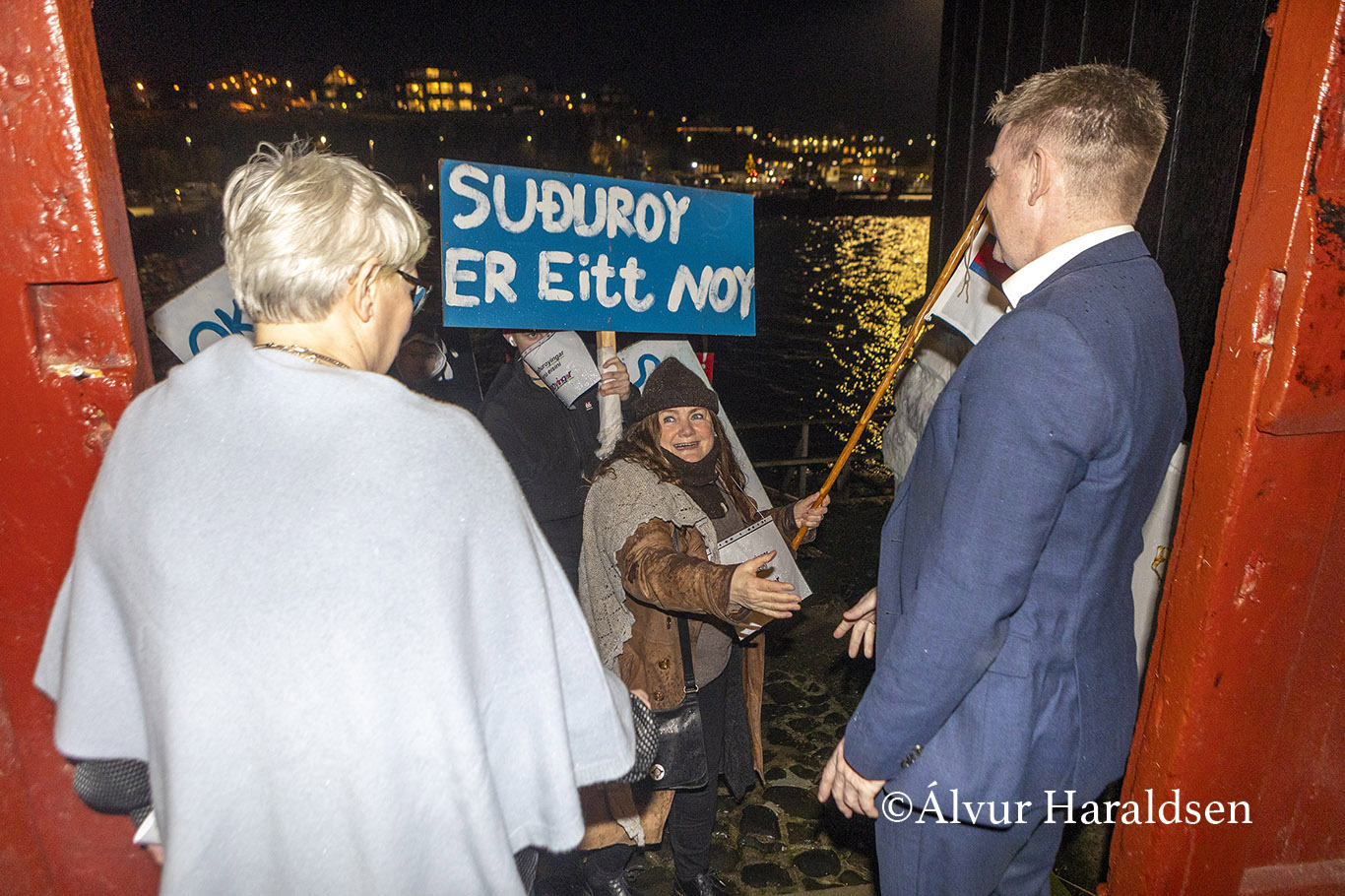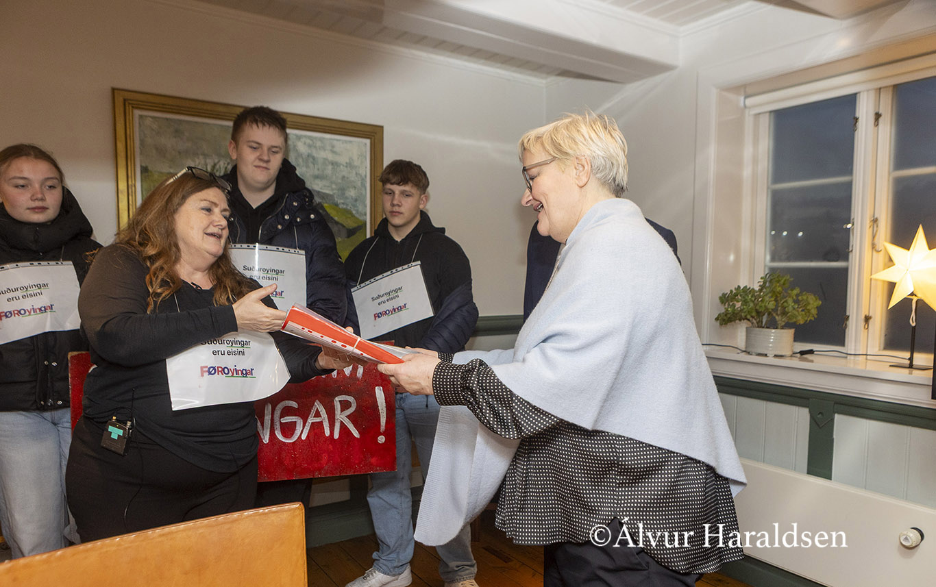 Mótmælis fólk úr Suðuroy, vitjaðu í Tinganesi í morgun.