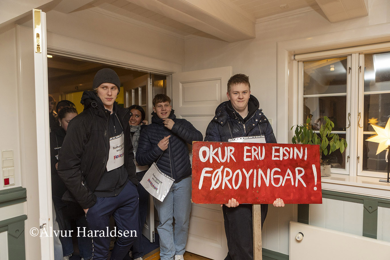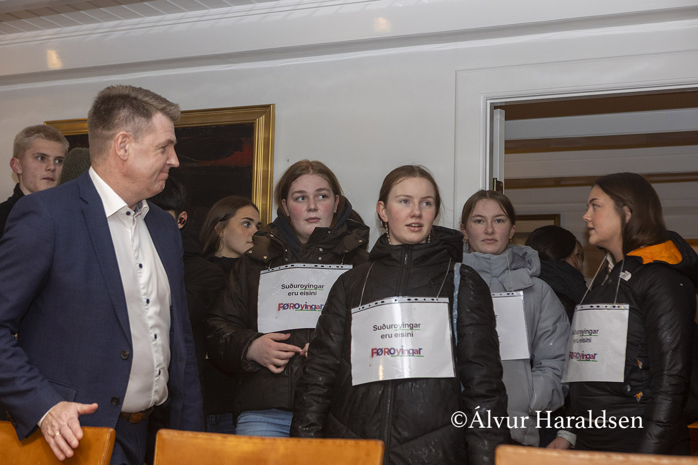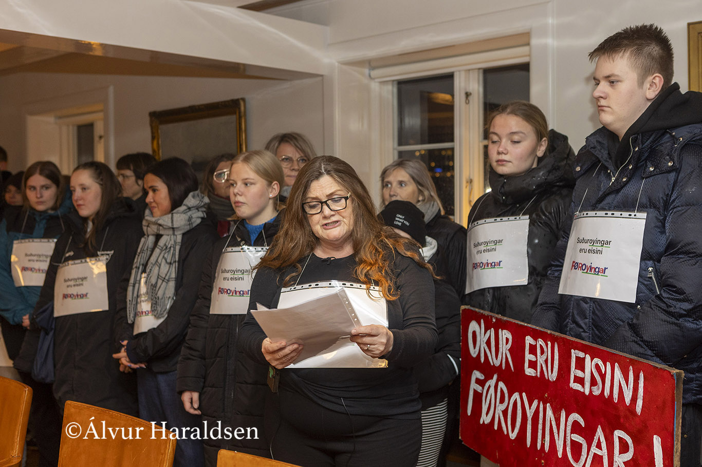Mótmælis fólk úr Suðuroy, vitjaðu í Tinganesi í morgun.