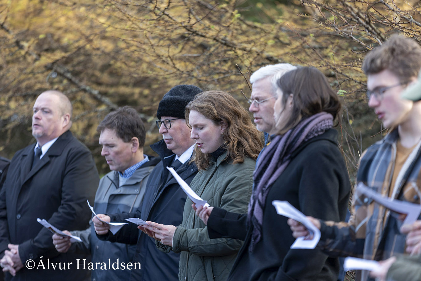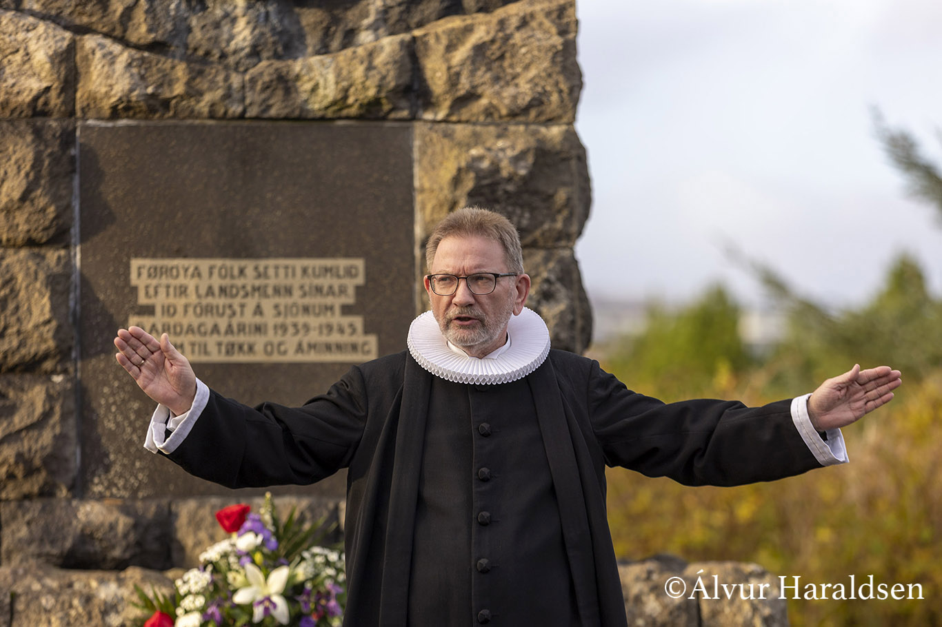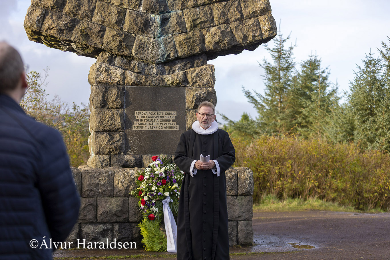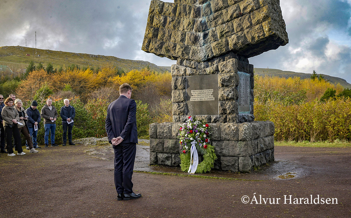 Løgmaður hevur lagt krans við minnisvarðan í Viðarlundini í Havn