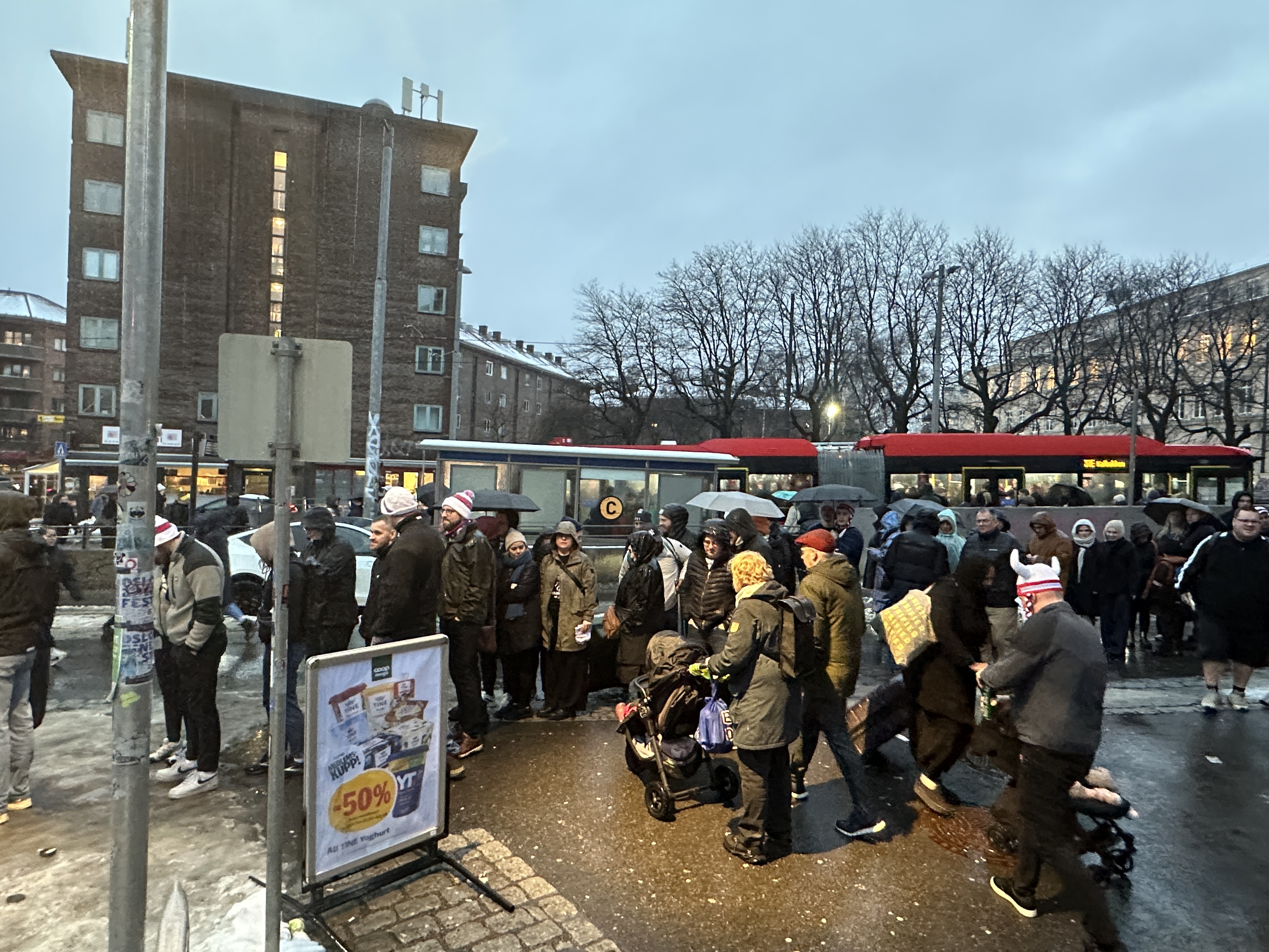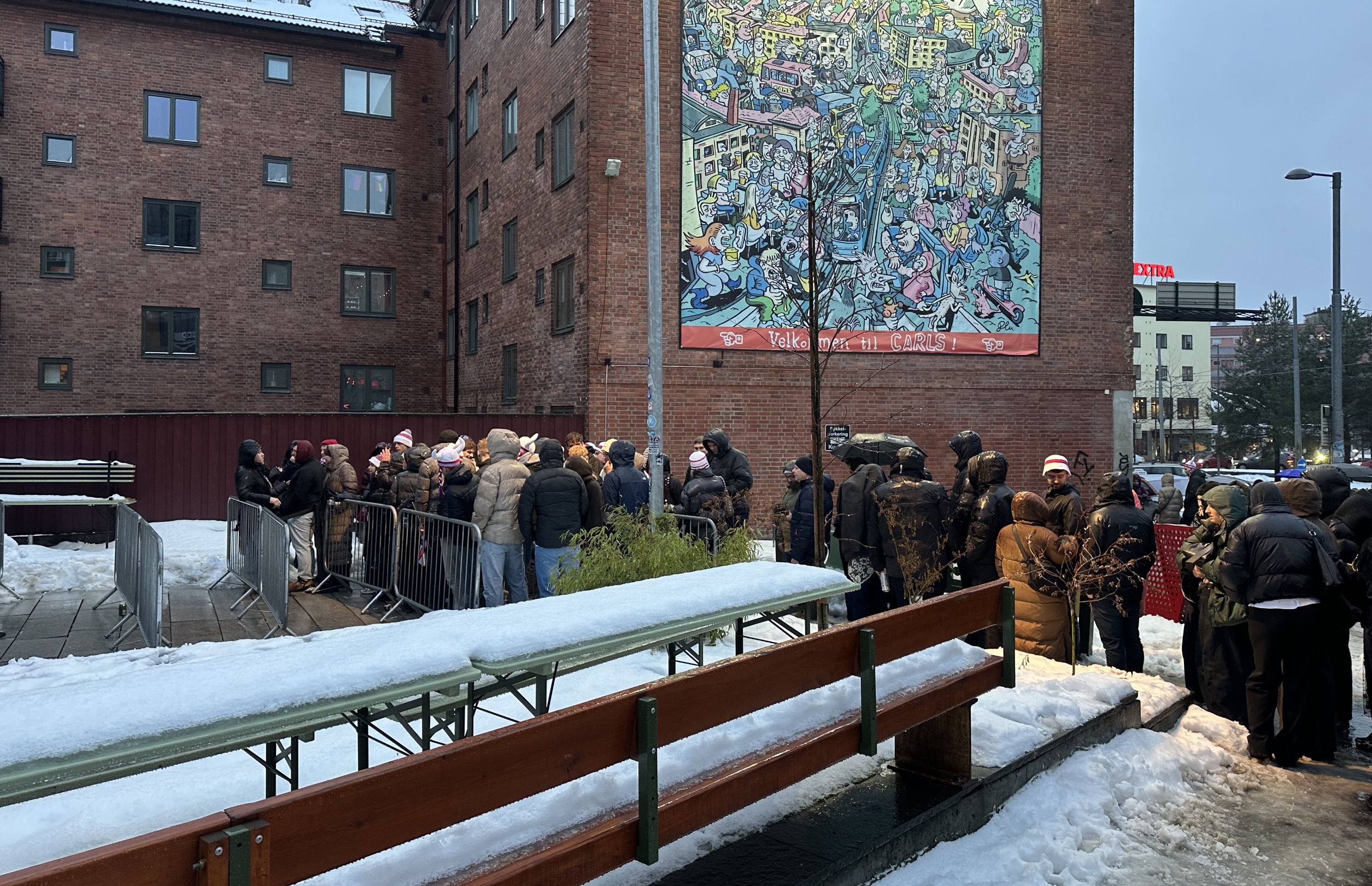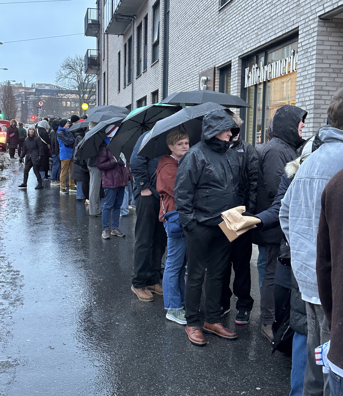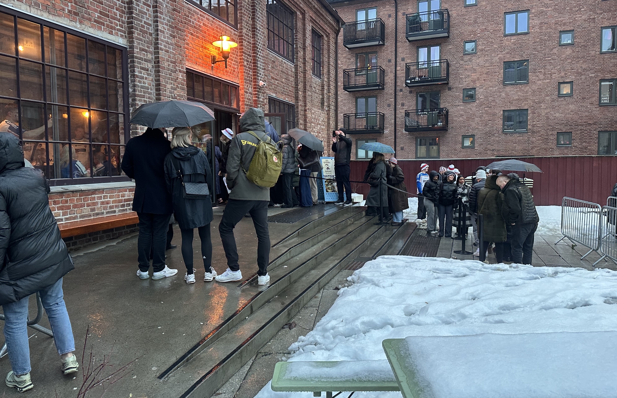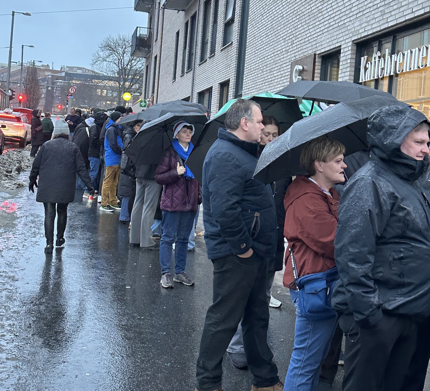 Hóast pláss bert var fyri 1.500 fóækum, so høvdu nógv fleiri enn tað leitað sær til upphitingina í Carls í Trondheimsgata. Nógv stóðu og bíðaðu til fánytis í regninum uttanfyri.