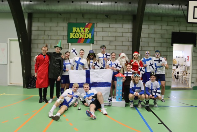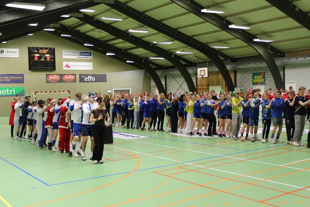 Eftir frálíka døgurðan, ið var borðreiddur í VB-húsinum, fóru øll, bæði næmingar og starvsfólk úr øllum skúlunum, undir stóru flogbóltskappingina í Vágs høll.