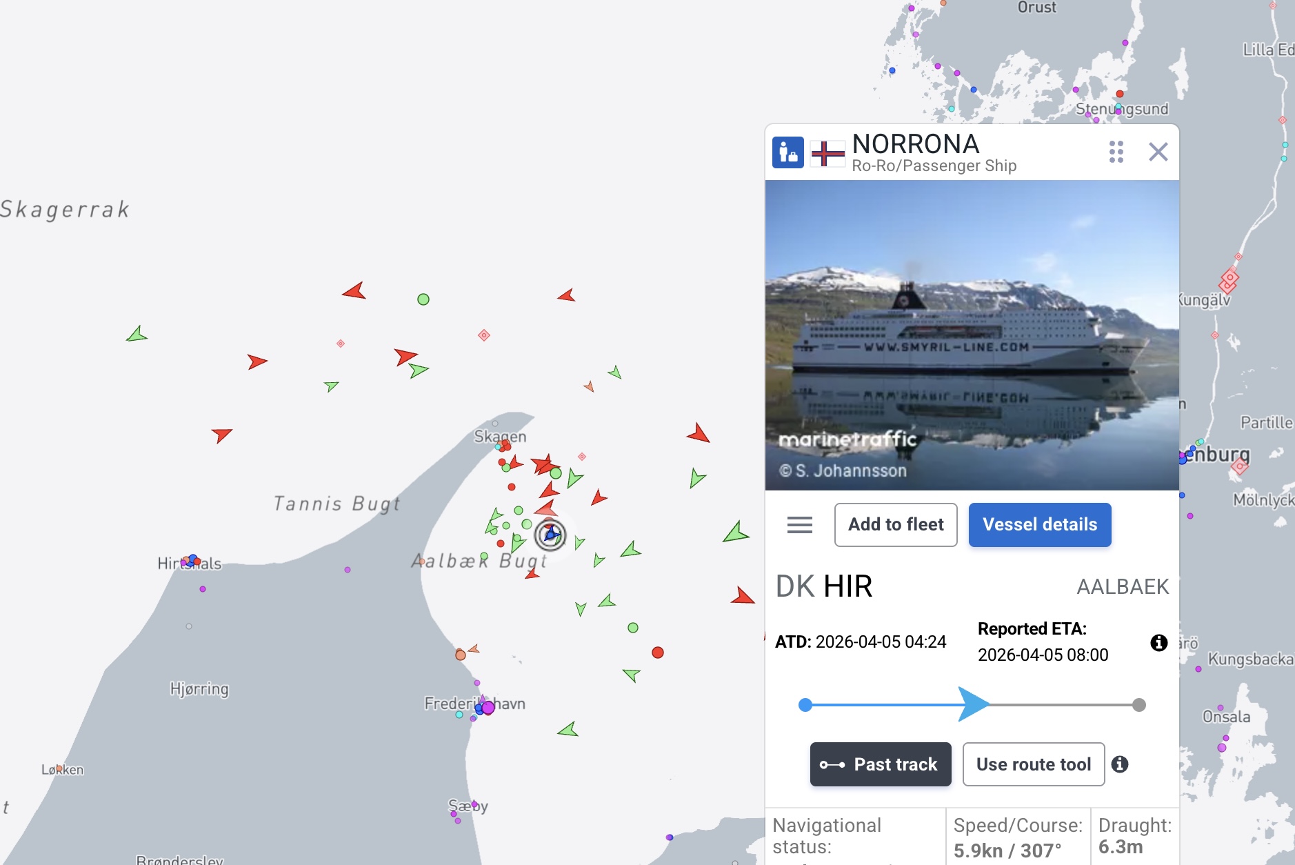 Norrøna kundi ikki liggja í Hirtshals, tí aðrar ferjur skuldu brúka ferjuleguna, og fór avstað um hálvgvum fýratíðina í nátt.