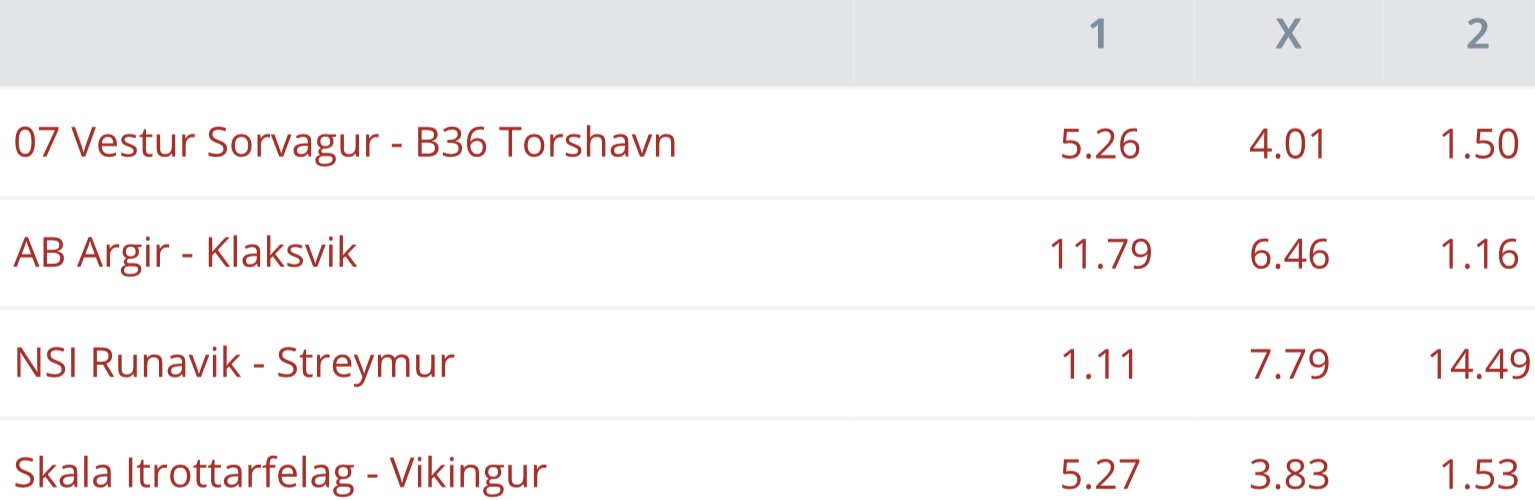 NSÍ og KÍ hava eina stóra favorittstøðu hjá altjóða veddingarfyritøkum. Víkingur og B36 hava minni, men greiðar favorittstøður.