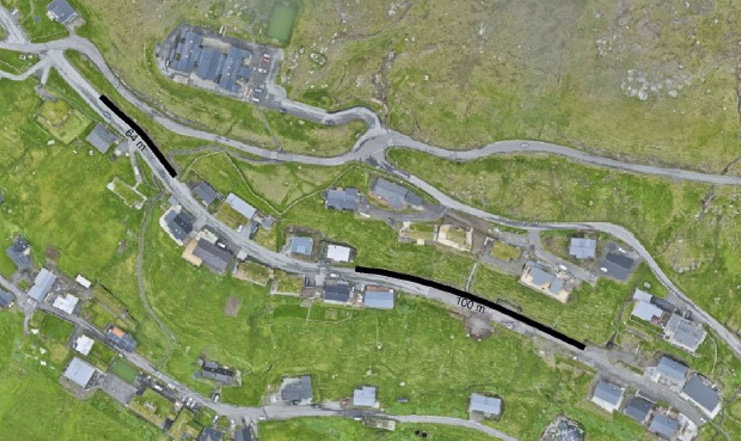 Harumframt verða kloakkleiðingar, sum hava ligið berar fram við vegnum, nú tyrvdar og stoyptar, og tað norðara av teimum báðum vendiplássunum á vegnum verður fylt upp.