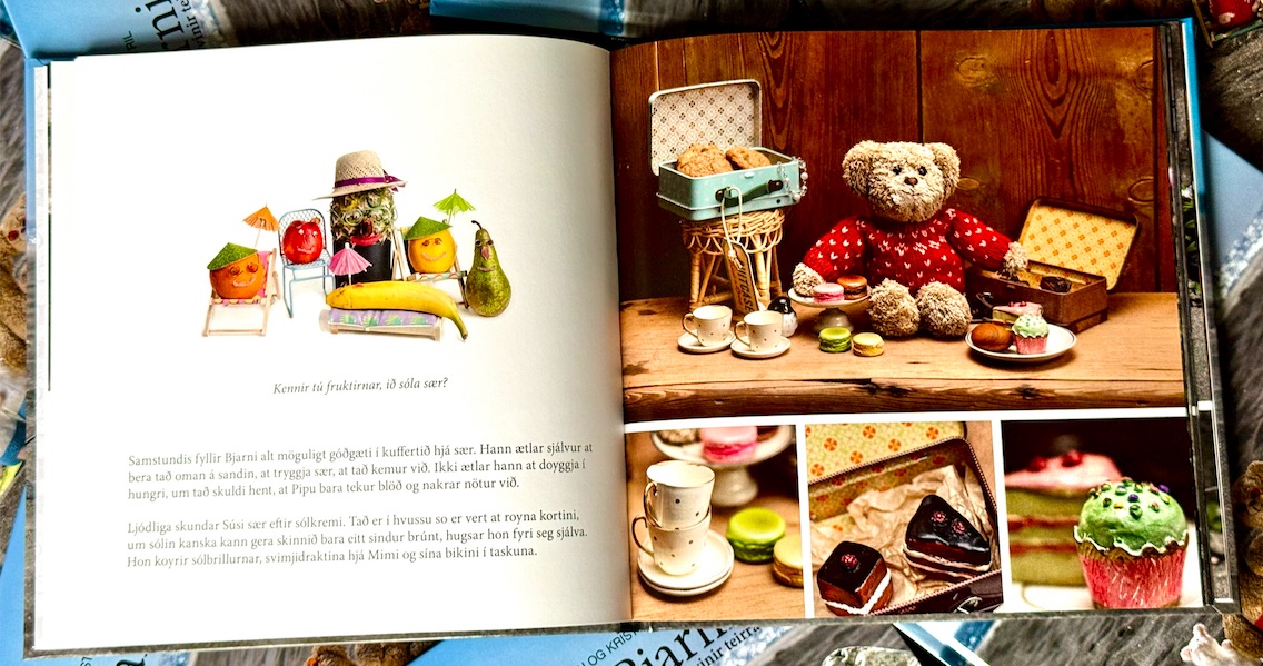 Myndirnar í bókini eru fotomyndir og bamsurnar, mýsnar og alt á myndunum er veruligt.