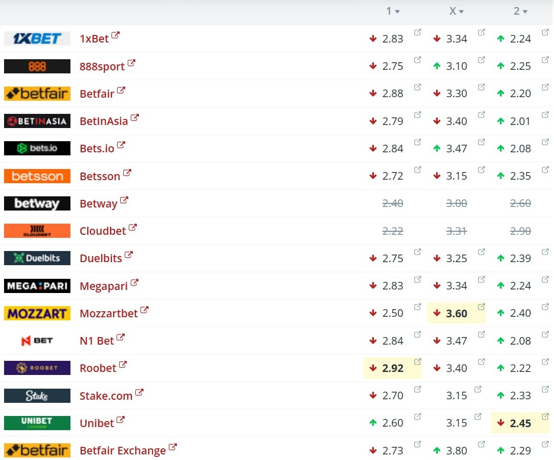 Oddsini hjá altjóða veddingarfyritøkum, ið lata odds upp á dystin eru næstan jøvn. Tó hella oddsini eitt lítið vet til ein HB-sigur.
