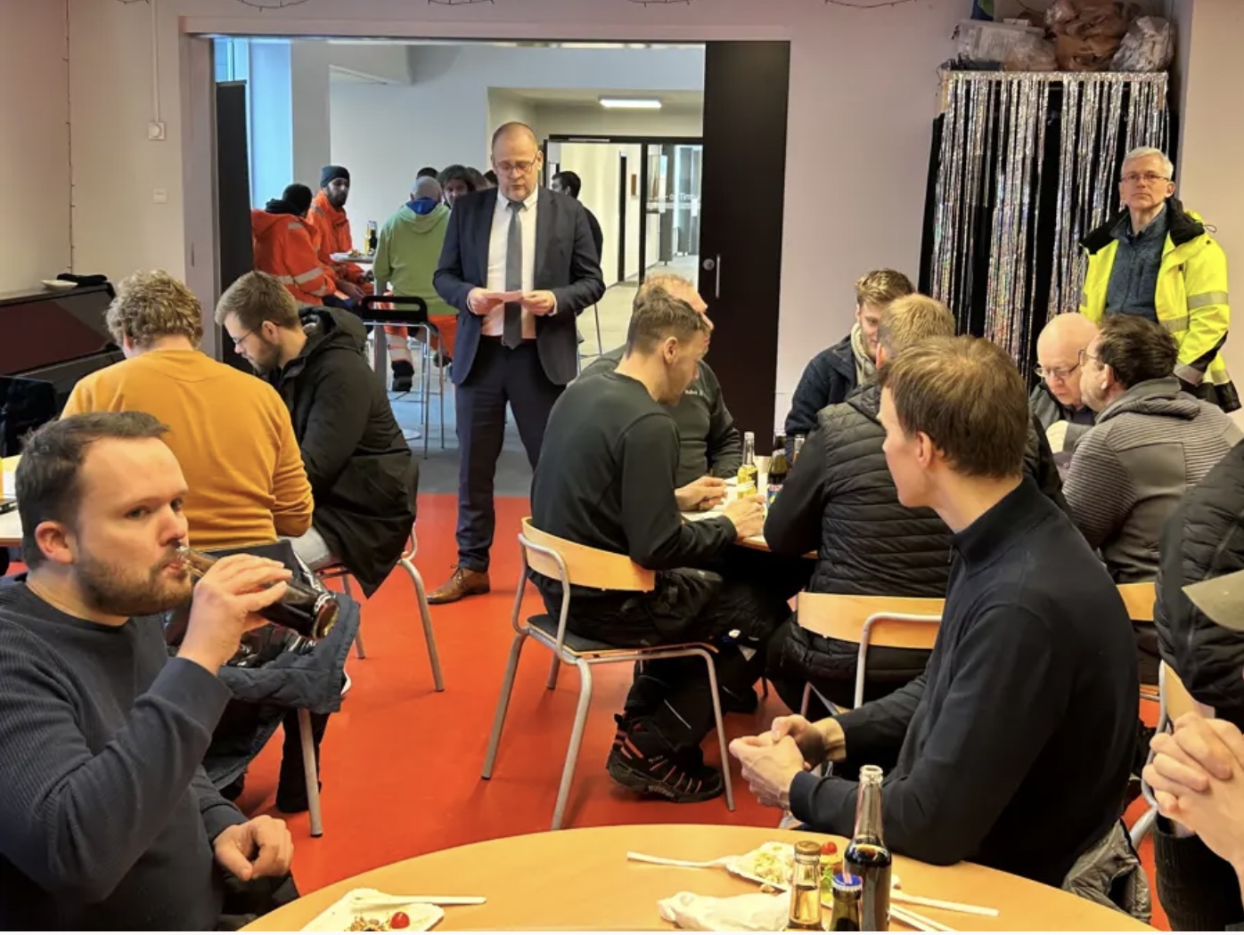 Tað var Landsverk, sum er byggiharri, ið skipaði fyri reisigildinum, sum var hildið fyri handverkarum, ráðgevum og øllum øðrum, sum eru partur av arbeiðinum.