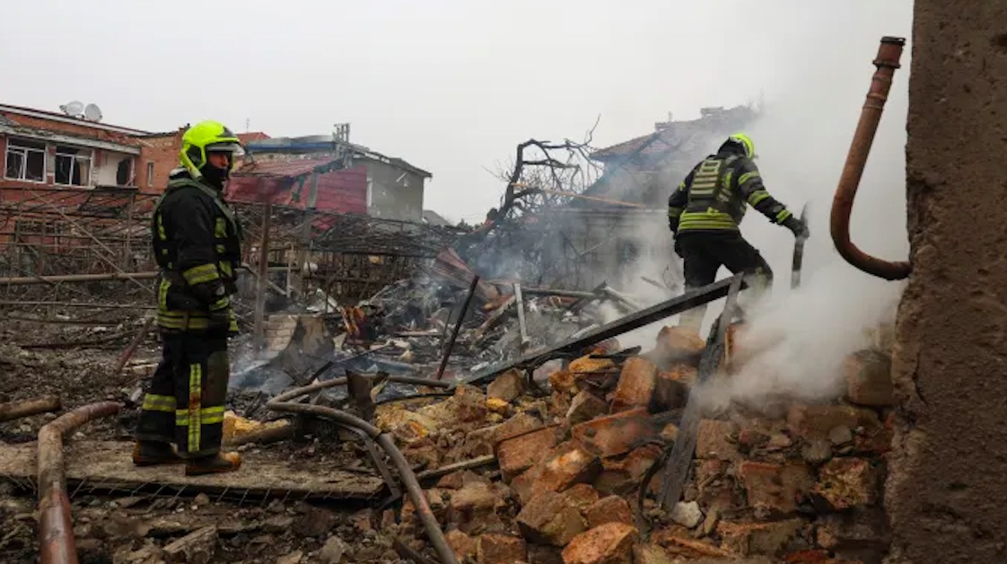 Guvernørurin í regiónini, Oleh Kiper, skrivar á Telegram, at turrgoymslur og bingjur vórðu oyðiløgd í álopinum.