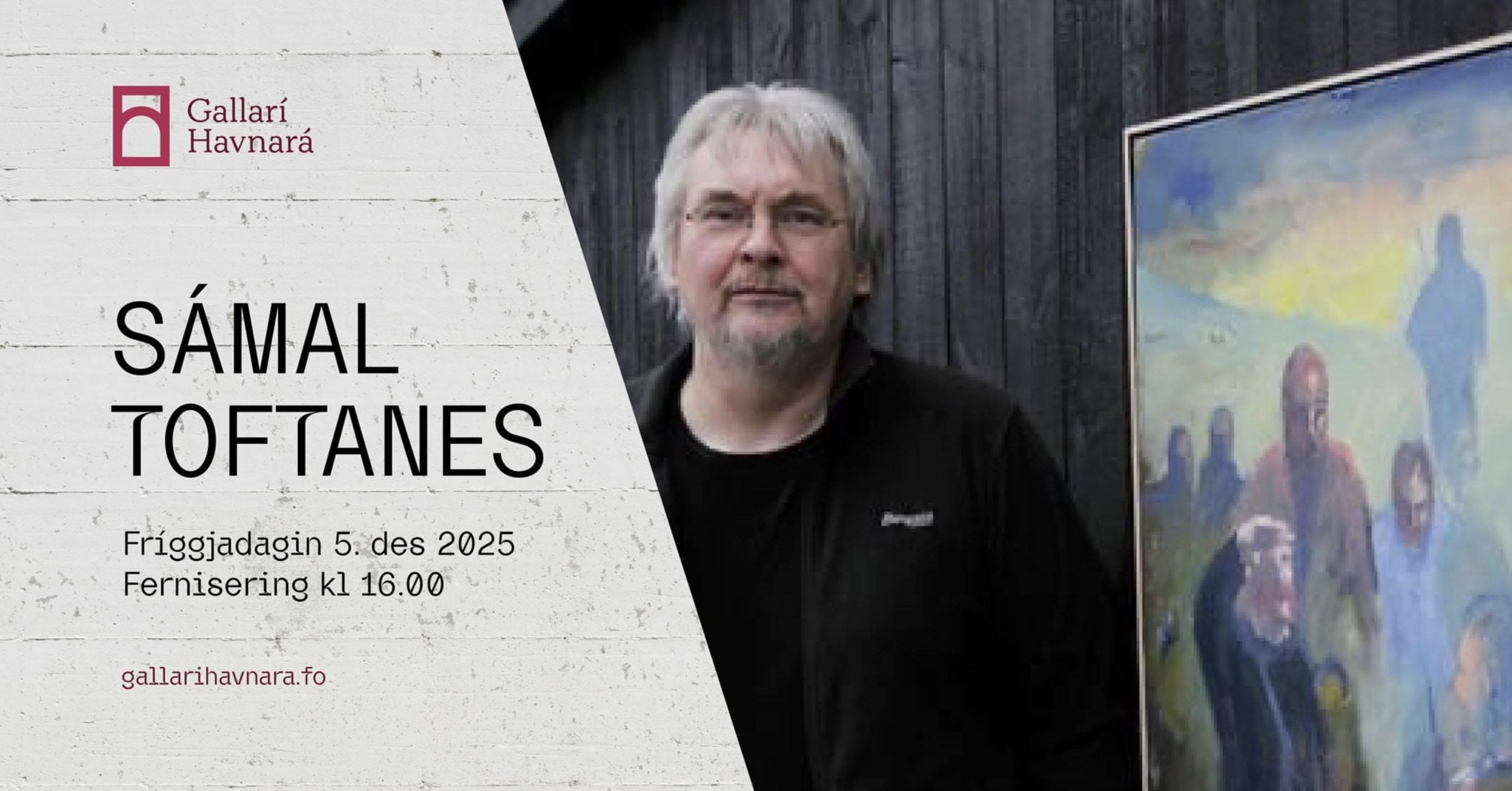 Fernisering er fríggjadagin 5. desember kl. 16-18, og Bárður á Lakjuni kemur at syngja og spæla nøkur løg. Framsýningin er opin frá 16-18 allar dagar fram til 11. desember.