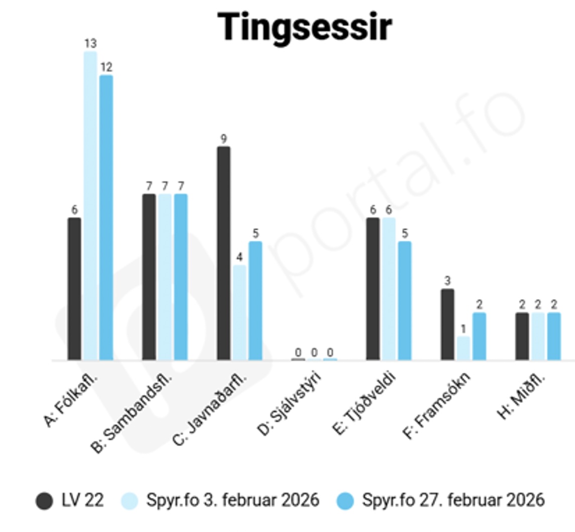 Alt er enn rímiliga opið, nú valdysturin er í gongd í 16 dagar aftrat, og næsta veljarakanning kann vísa, at leiðslan hjá Fólkaflokkinum minkar. Tað broytir matematikkina, men neyvan so heilt nógv tær grundleggjandi møguligu samansetingarnar. Fólkaflokkurin er við síni stóru framgongd í eini heilt góðari støðu, um enn tað endar við 12, 11, 10 ella enntá níggju løgtingslimum.