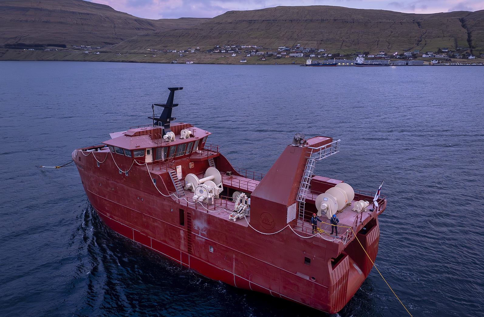 Í morgun, jólaaftansmorgun, kom Sleipibáturin Serval M/s á Skála við skrokkinum til nýggja frystitrolaran.