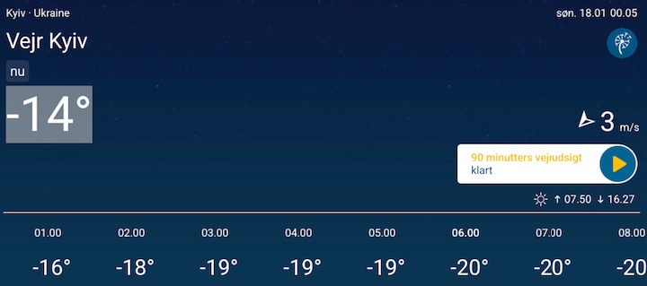 Samstundis, sum russar royna at knúsa streym-og vatnveitingina í ukrainska høvuðsstaðnum, uppliva ukrainar kaldasta veturin í 20 ár