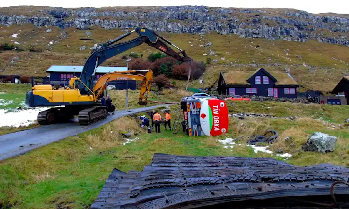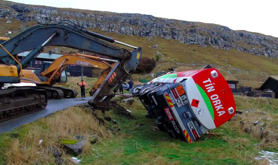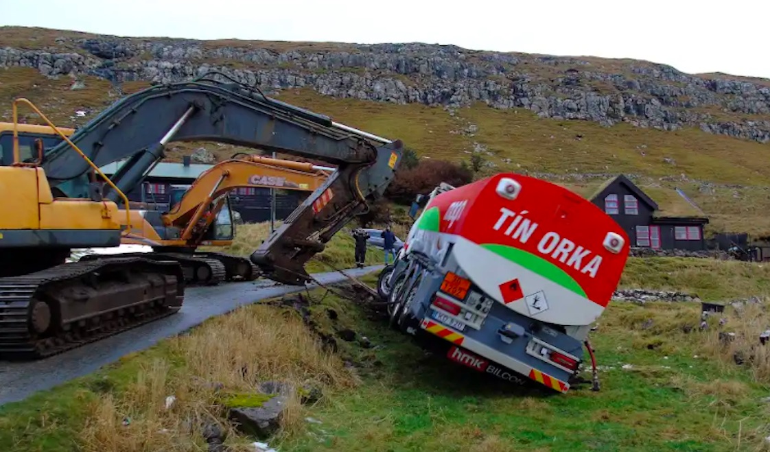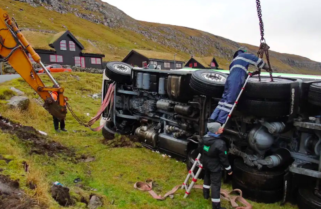 Løgreglan visti fyrr í vikuni at siga, at tað var rættiliga hált, tá tangabilurin gleið og fór út av vegnum.