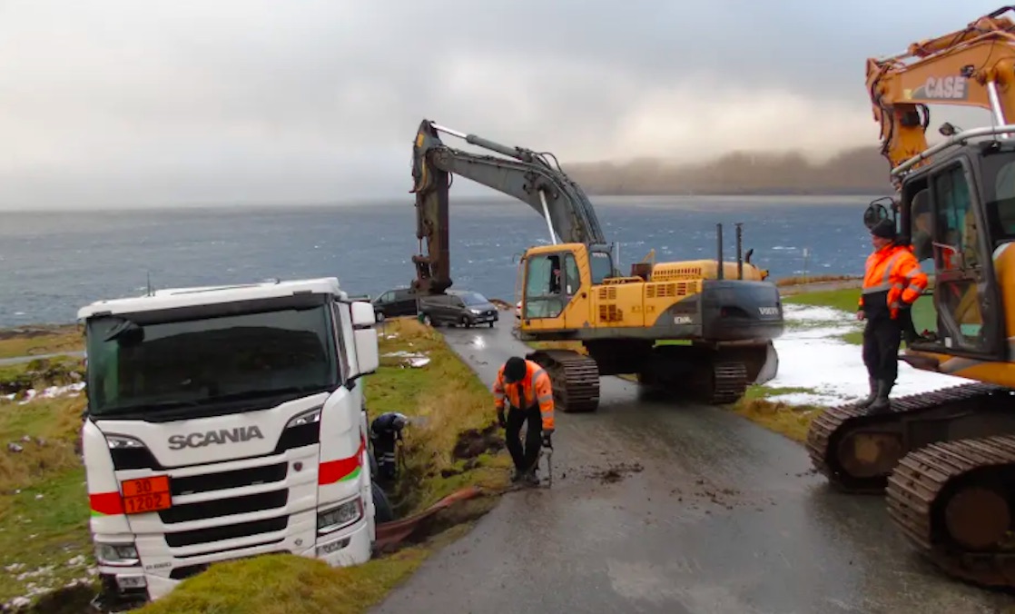 Ingi Sørensen var í Kirkjubø, tá arbeitt varð við at fáa bilur uppaftur, og hann hevur tikið viðheftu myndir.