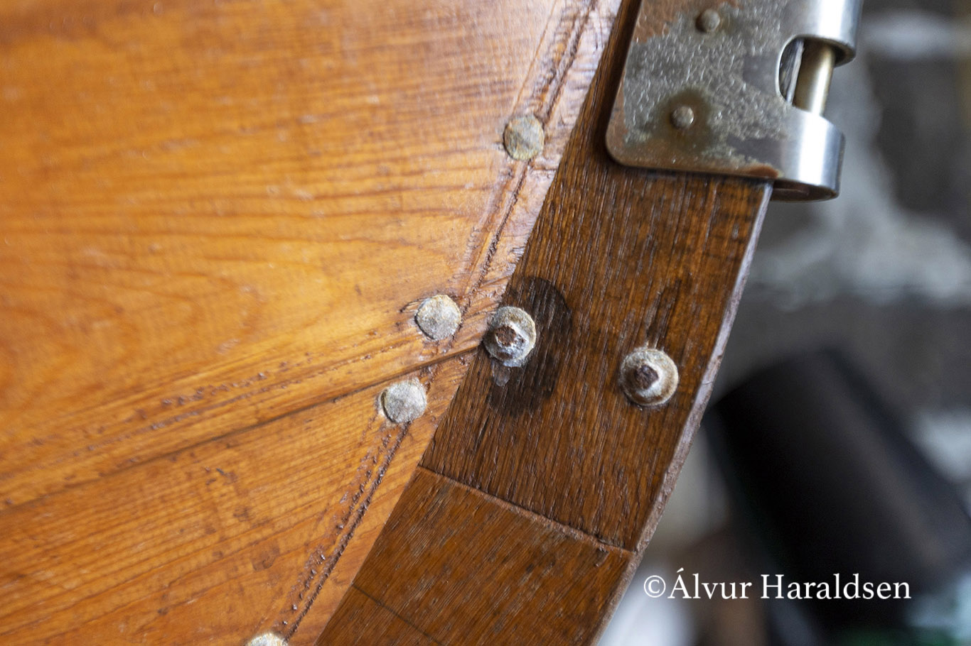 – Eg fekk tað sagað í rættari tjúkd, soleiðis at tað var bara skuldi hølvast í báðum síðum, og so var klárt at smíða. Borðini vóru 10 tummar breið og í botninum 12 tummar.