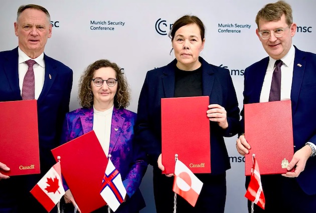 Semjuskjalið varð undirskrivað í München av Sirið Stenberg, landsstýriskvinnu í uttanríkis- og mentamálum, Vivian Motzfeldt, landsstýriskvinnu í uttanríkismálum í Grønlandi, danska verjumálaráðharranum, Troels Lund Poulsen og kanadiska verjumálaráðharranum, David J. McGuinty.