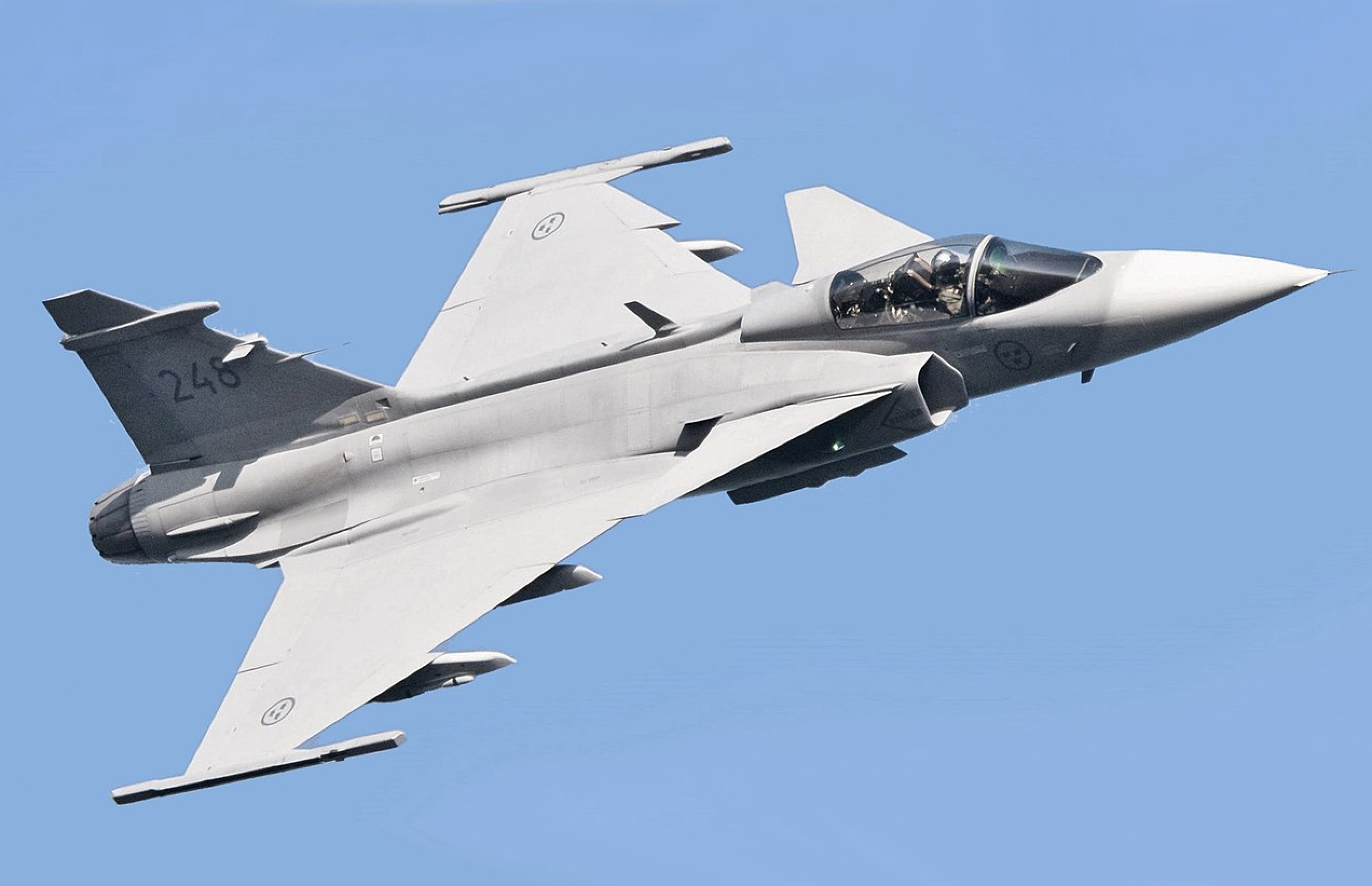 JAS 39 Gripen flogfør eru framleidd av svenska vápnaframleiðaranum Saab.